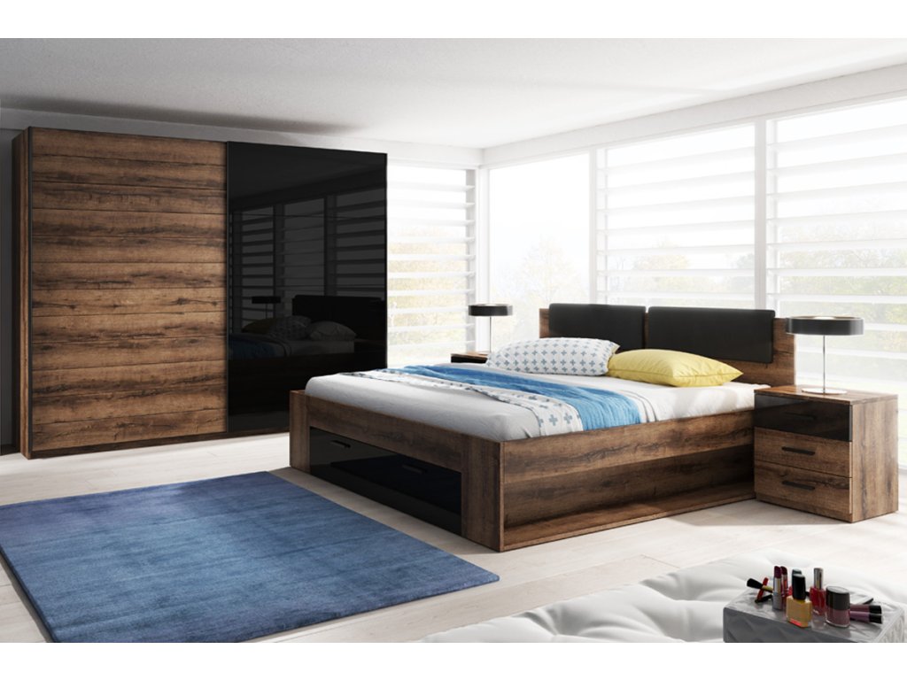 Sestava PALINDA je v elegantním a nadčasovém provedení. Tmavé odstíny nábytku vytvářejí harmonii domova. Pro lidi, kteří mají rádi spojení elegance a funkčnosti, je ložnicová sestava PALINDA vynikajícím řešením. Sestava je vyrobena z kvalitních LTD desek, které jsou nenáročné na údržbu. Barevné provedení je v kontrastu barev: dub monastery, černý lesk. PALINDA 51 postel 160 - rozměry (š,v,h): 166 x 101 x 205 cm. 2 x PALINDA 22 noční stolky - rozměry (š,v,h): 47 x 56 x 42 cm. PALINDA 67 šatní skříň 200 cm - rozměry (š,v,h): 200 x 210 x 61 cm. Celkové rozměry (v,h): 210 x 205 cm. Šířka volitelná. Postel PALINDA má spací plochu 160 x 200 cm. Matrace a rošt nejsou součástí postele. Můžete si je u nás dokoupit ve velikosti 2 x 80 cm, resp. 160 x 200 cm. Šatní skříň je dvoudveřová. Dveře jsou posuvné. Uvnitř se nachází 5 polic a jedna šatní tyč. Dodáváme v demontovaném stavu.Doplňkové parametry
