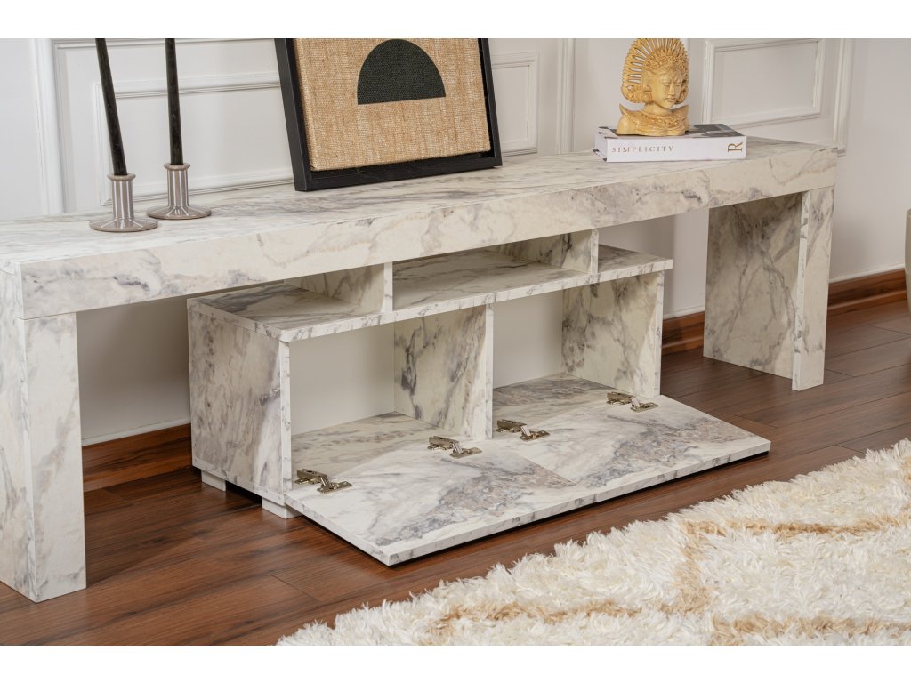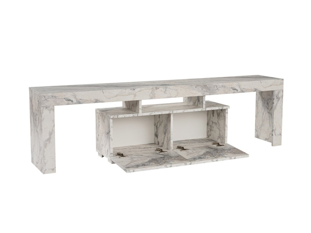 Proměňte svůj obývací pokoj ve stylový a funkční prostor s naším úžasným televizním stolkem v barvě frézie a mramoru. Tento televizní stolek není jen kus nábytku, je to ztělesnění elegance a sofistikovanosti.