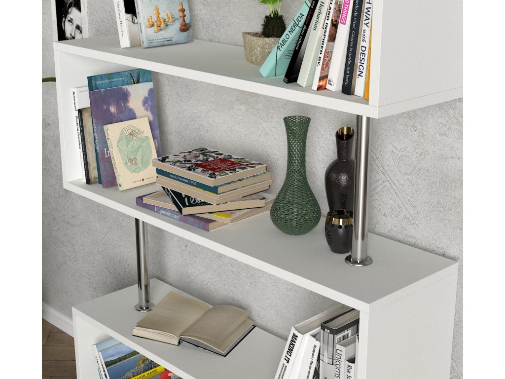 Moderní regál PARADISE Vas zaujme svými čistými liniemi, které jsou ideální do moderních interiérů. Regál je ideální pro uložení knih, ale i dekorací či květin. Neutrální barevné provedení v kombinaci s chromovými prvky podtrhuje jeho moderní design. Regál lze umístit ke stěně nebo volně do místnosti, čímž vznikne zajímavé členění prostoru.