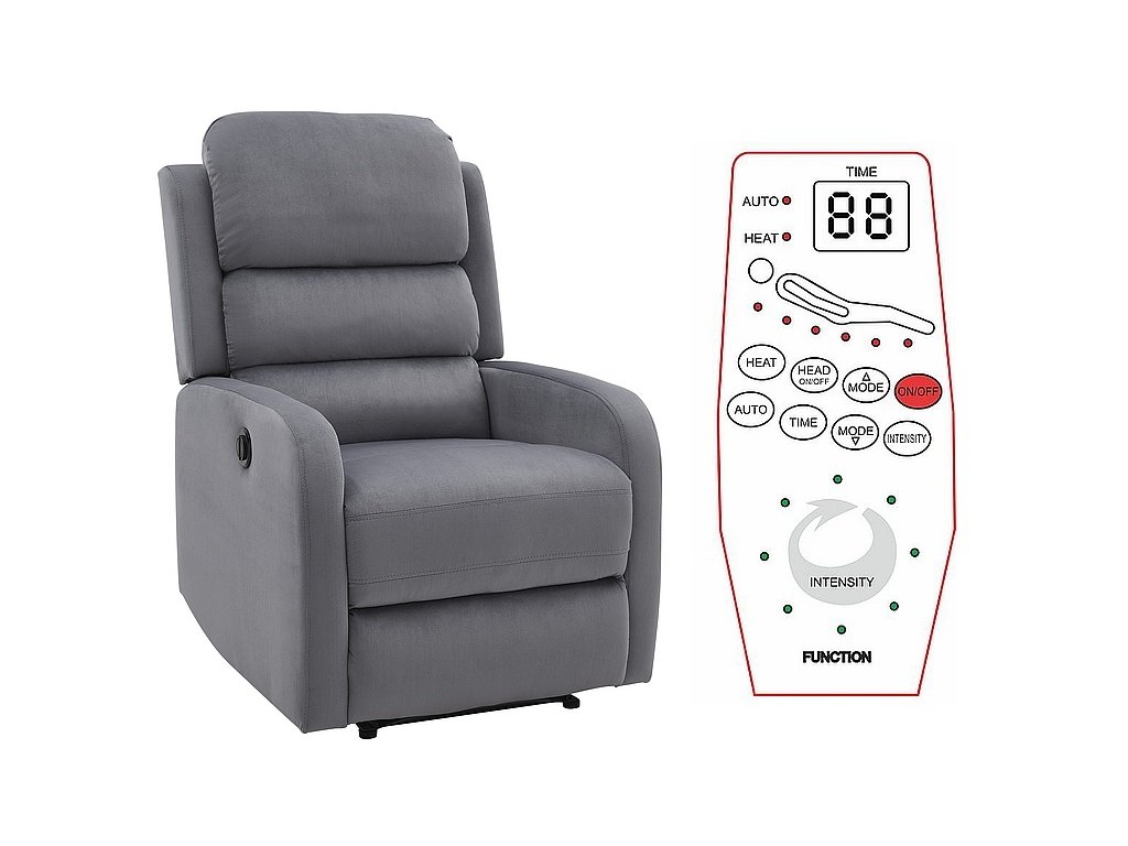 PERSEFONA rozkládací relaxační elektrické křeslo s funkcí masáže, šedé