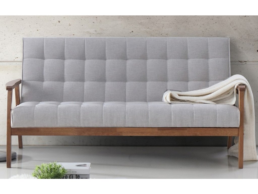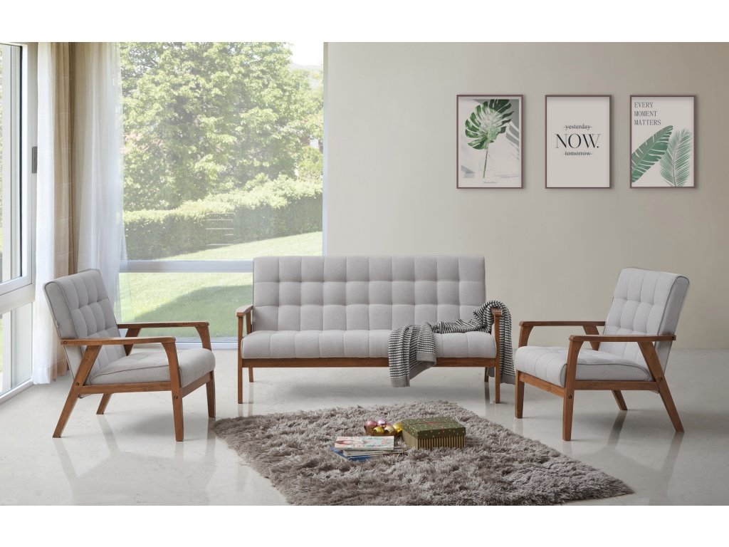Třísedák PETRONELA III v moderním jednoduchém provedení s nádechem retra. Má dřevěné nožičky spojené s dřevěnými područkami. Barevných odstín dřeva - ořech. Sedací část je čalouněna šedou látkou, výrazné prošívání dodává křeslu atraktivní vzhled. Pohodlné sezení zaručují použité materiály: PUR pěna v kombinaci pružnými čalounickými pásy. Výška sedu je 40 cm a hloubka sedu je 52 cm. Výška područek je ve vyšším bodě 53 cm a v nižším bodě 51 cm. Rozměry (š/h/v): 162 x 75 x 81 cm. Dodáváme v demontovaném stavu. V naší nabídce naleznete i křeslo a celou sestavu PETRONELA, díky které si dokážete zařídit obývací pokoj v retro stylu.Doplňkové parametry