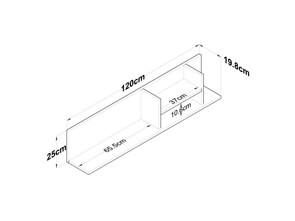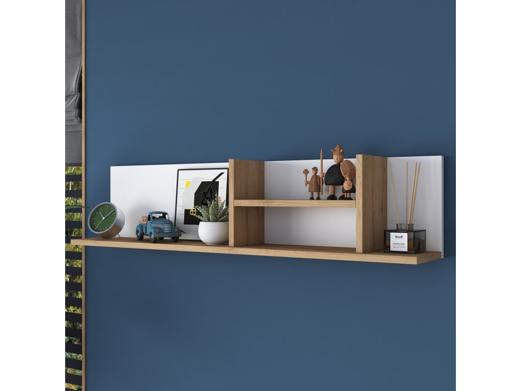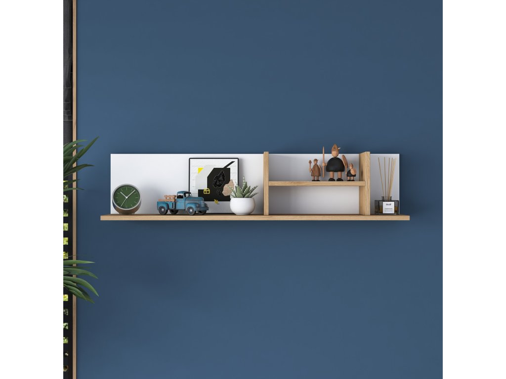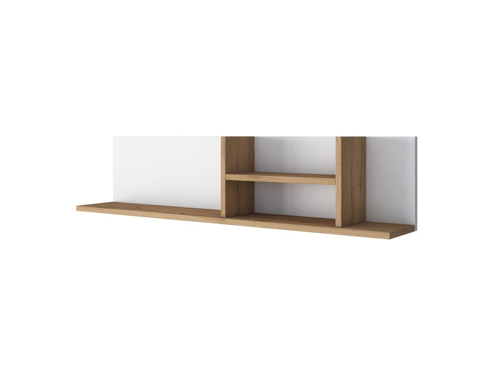 Nástěnná police PHONE přináší do vašeho interiéru moderní design a funkčnost. Kombinace bílé barvy a dekoru ořechu dodává prostoru stylový vzhled, zatímco její praktické rozměry umožňují široké využití. Je ideální pro vystavení knih, dekorací nebo rostlin, a přitom šetří místo.