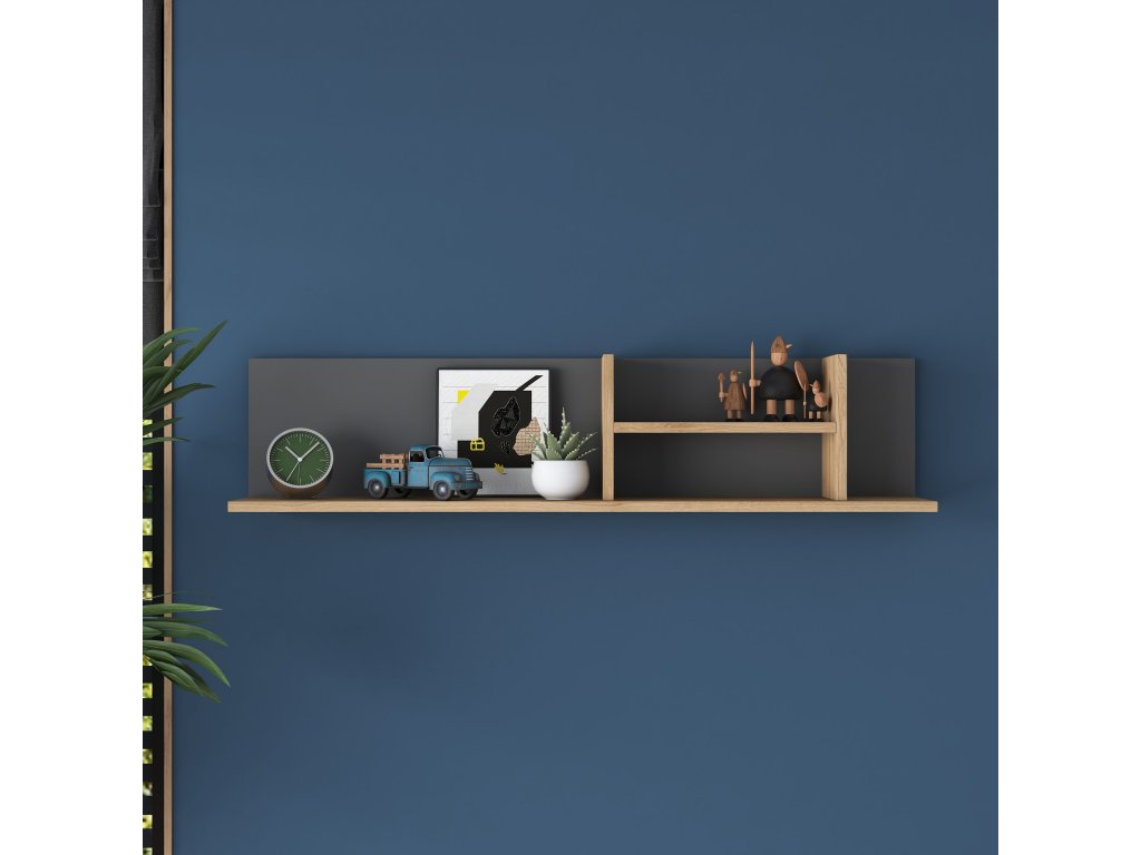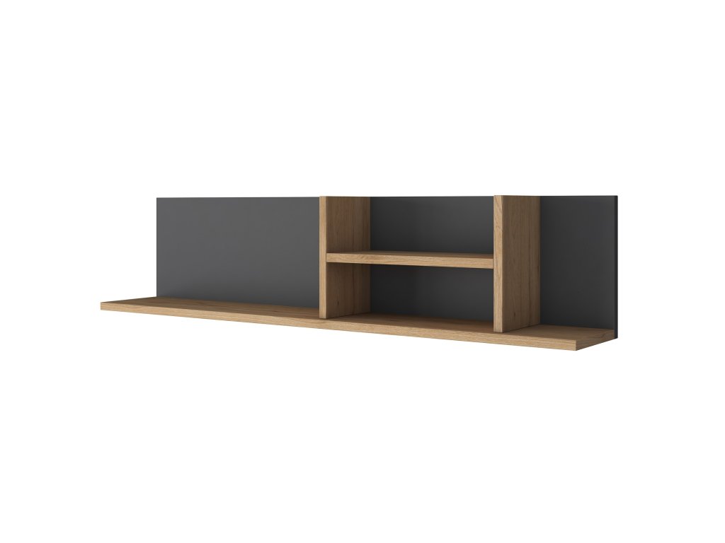 Nástěnná police PHONE je stylovým a funkčním řešením pro každý moderní interiér. Díky kombinaci ořechu a antracitu přidává prostoru eleganci a univerzálnost. Je ideální pro umístění knih, dekorací nebo jiných předmětů, které chcete mít na dosah a zároveň vkusně vystavené.