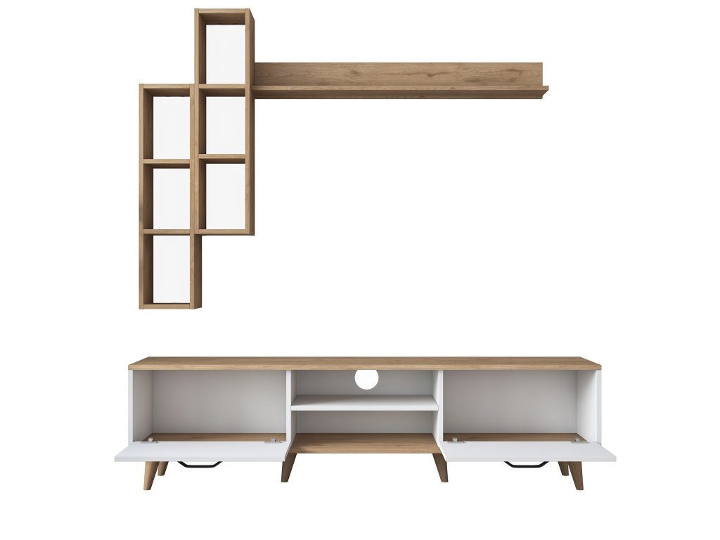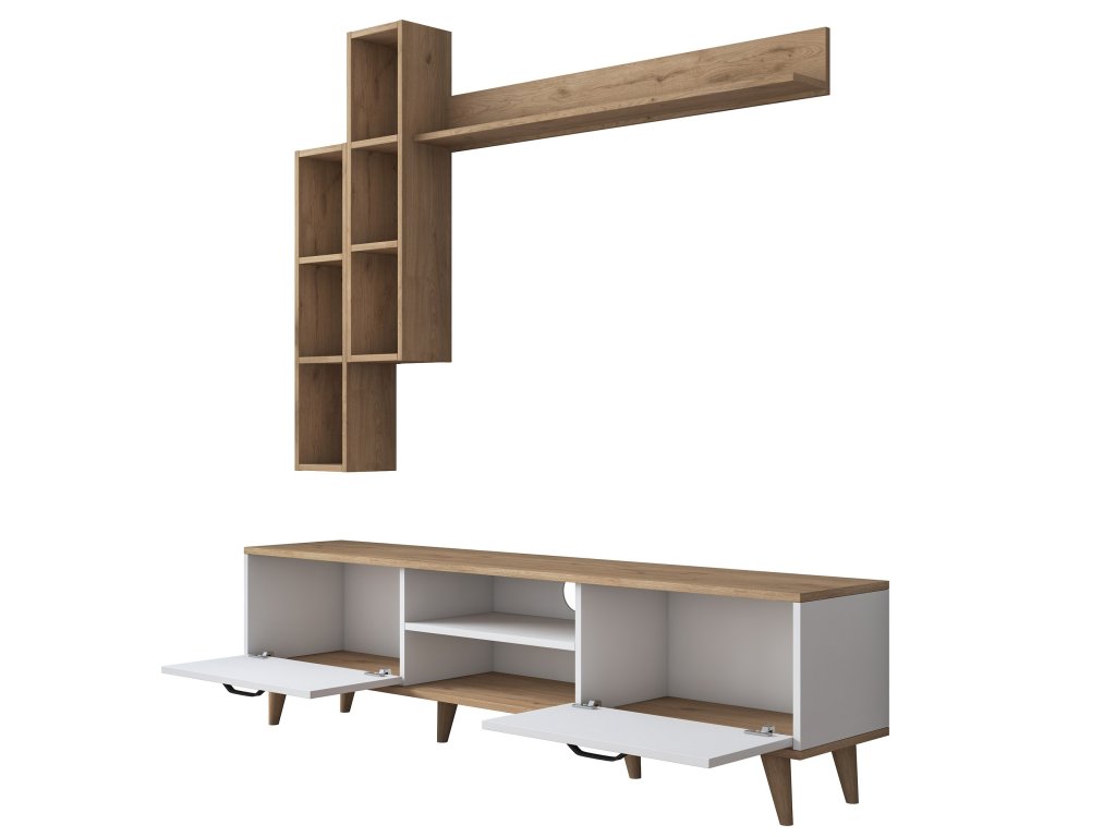 | Sestava obsahuje: | TV stolek, 2x nástěnný regál, nástěnná police |
