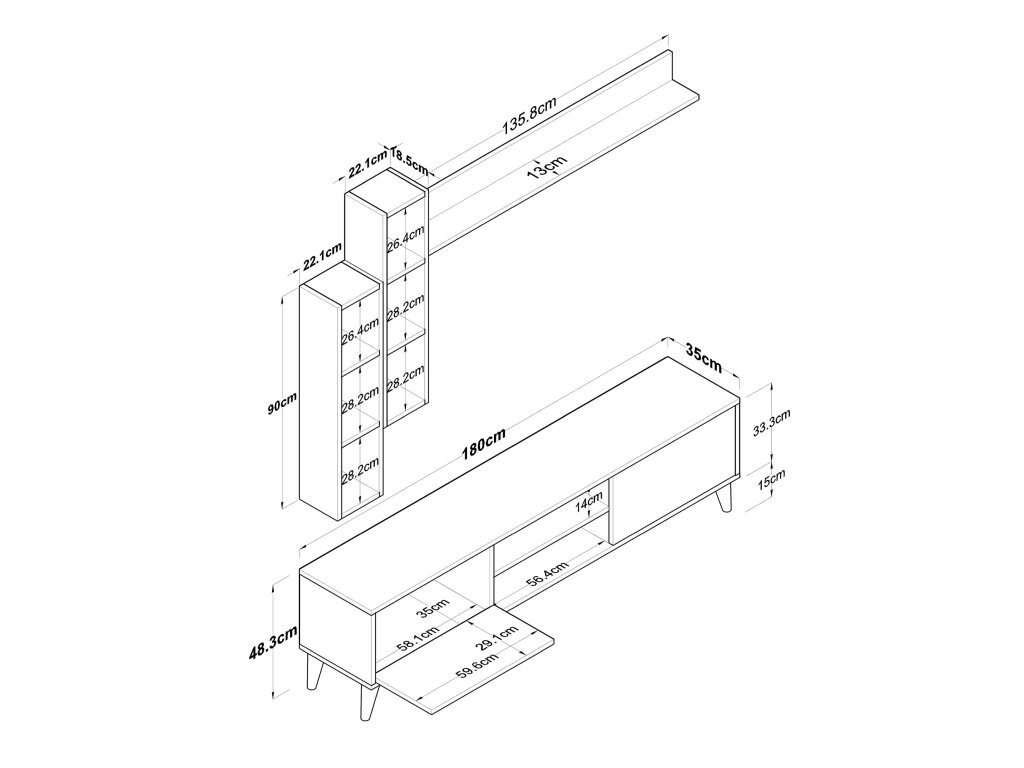 - Rozměry: 48,3 x 180 x 35 cm – kompaktní a praktický design vhodný do každého obývacího pokoje.