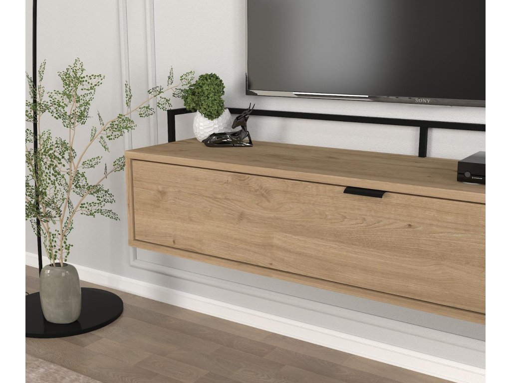 Závěsný TV stolek PINTA je vyroben z kvalitního materiálu LTD a kovu, což zaručuje jeho pevnost a dlouhou životnost. Jeho elegantní světle hnědá barva a čistý design přidají vašemu obývacímu pokoji moderní nádech. Stolek je vybaven praktickou skříňkou s jedněmi dvířky, což poskytuje dostatek úložného prostoru pro vaše elektronická zařízení a další příslušenství.