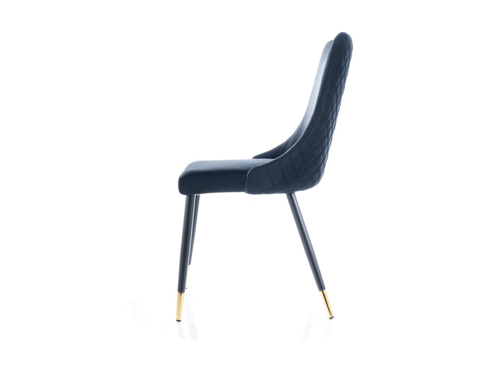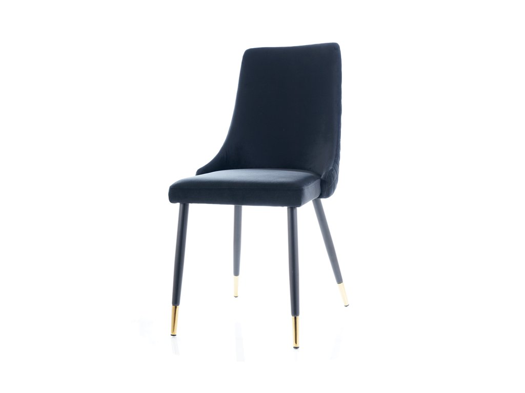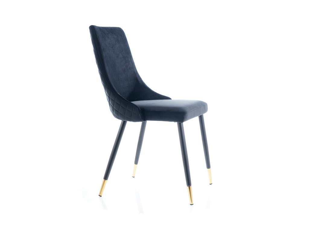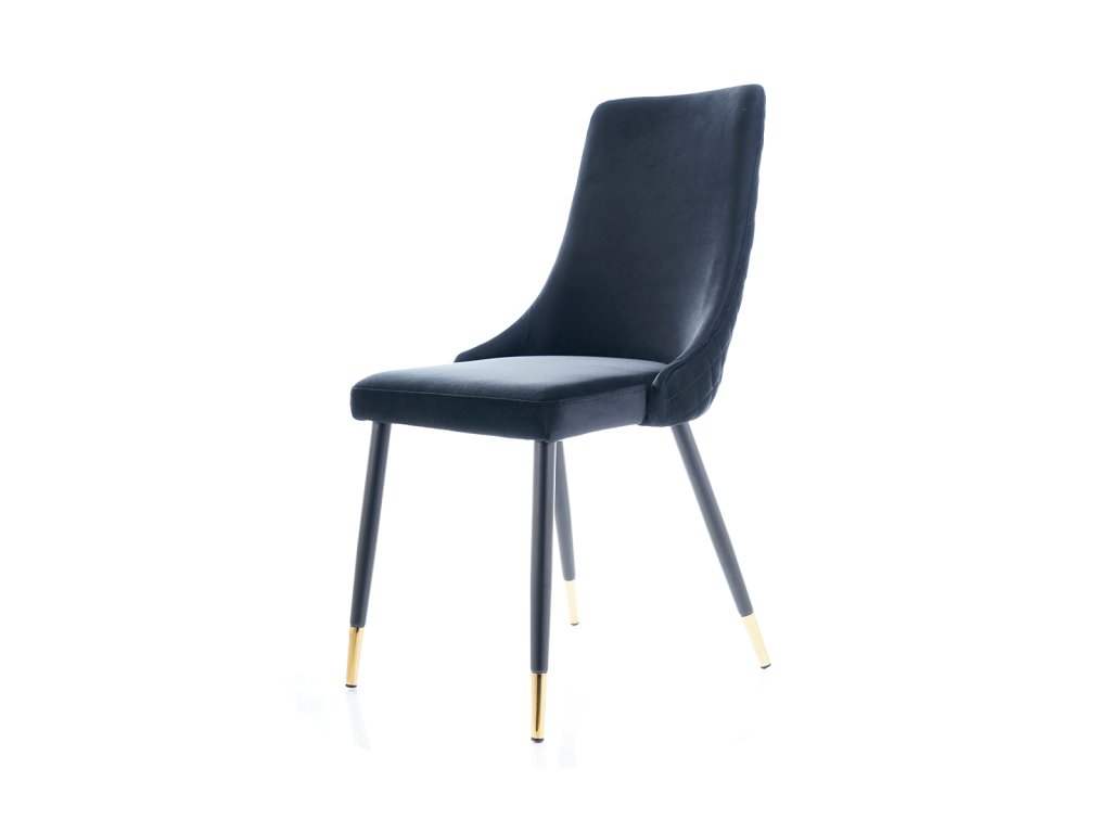 Jídelní židle, která Vás zaujme svým luxusním designem. Konstrukce židle je kovová v atraktivní kombinaci černá a zlatá. Čalounění je příjemné na dotek, jedná se o sametovou látku tmavě modré barvy. Tuto židli nabízíme také v dalších barvách. V naší nabídce naleznete i vhodný jídelní stůl. Židle je vhodná do interiérů zařízených ve vintage či skandinávském stylu. Šmrnc židli dodává ozdobné prošívání zádové opěrky. Dodáváno v demontu. Rozměry židle: Celková výška židle: 92 cm Výška sedáku: 49 cm Hloubka židle: 44 cm Šířka židle: 45 cmBuďte první, kdo napíše příspěvek k této položce.