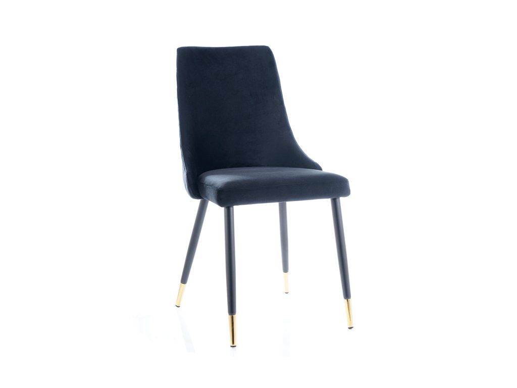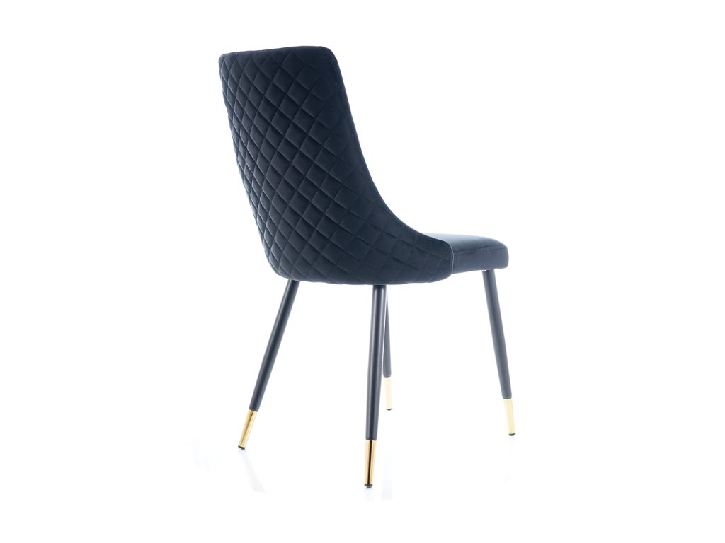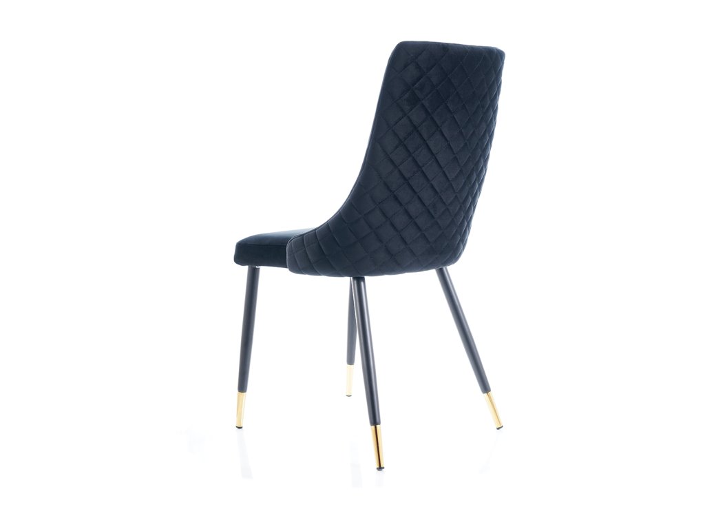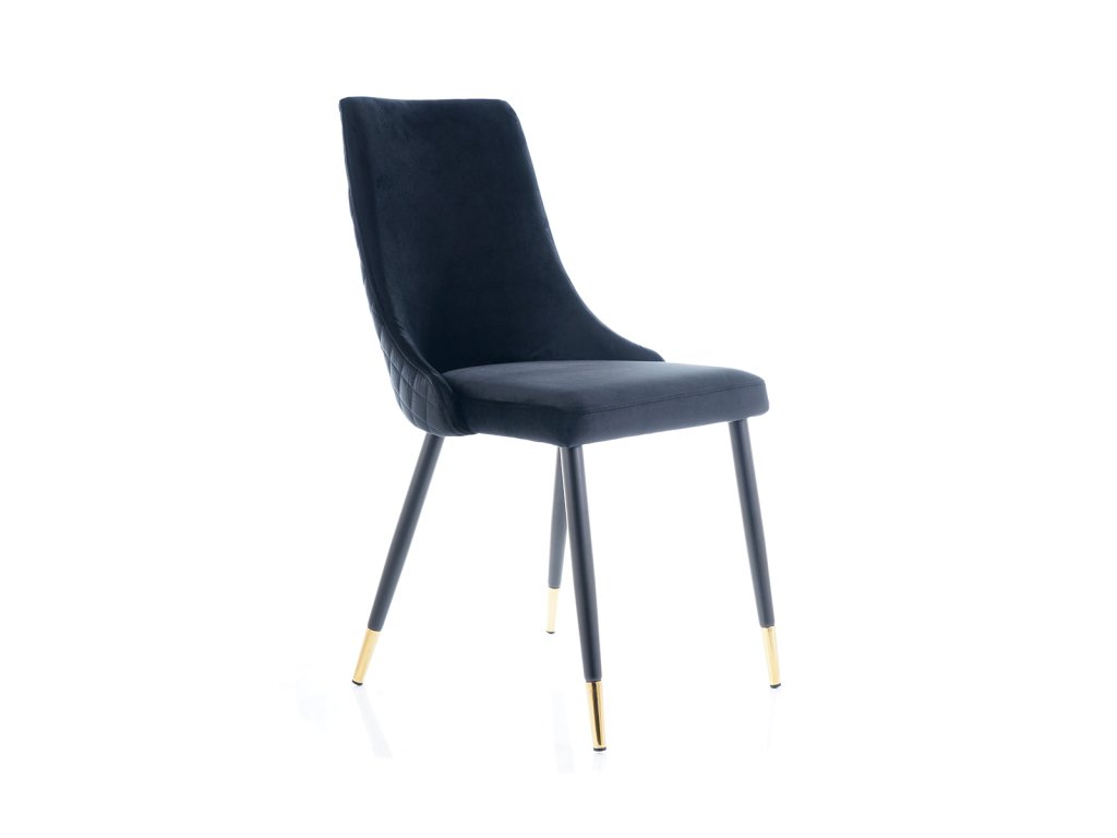 Jídelní židle, která Vás zaujme svým luxusním designem. Konstrukce židle je kovová v atraktivní kombinaci černá a zlatá. Čalounění je příjemné na dotek, jedná se o sametovou látku tmavě modré barvy. Tuto židli nabízíme také v dalších barvách. V naší nabídce naleznete i vhodný jídelní stůl. Židle je vhodná do interiérů zařízených ve vintage či skandinávském stylu. Šmrnc židli dodává ozdobné prošívání zádové opěrky. Dodáváno v demontu. Rozměry židle: Celková výška židle: 92 cm Výška sedáku: 49 cm Hloubka židle: 44 cm Šířka židle: 45 cmBuďte první, kdo napíše příspěvek k této položce.
