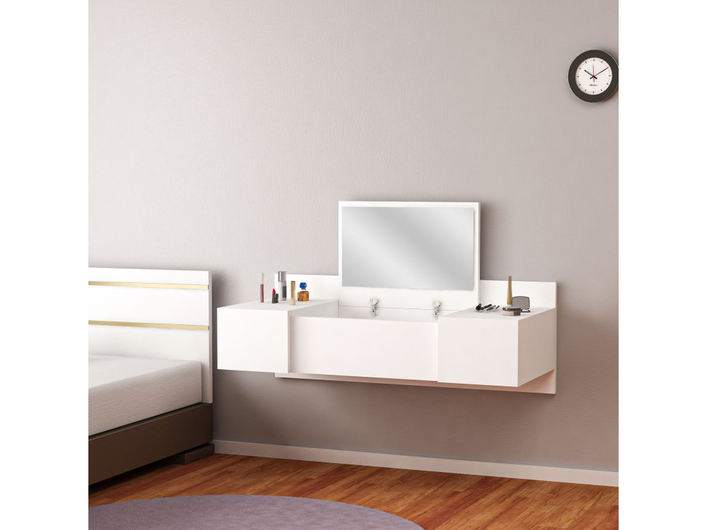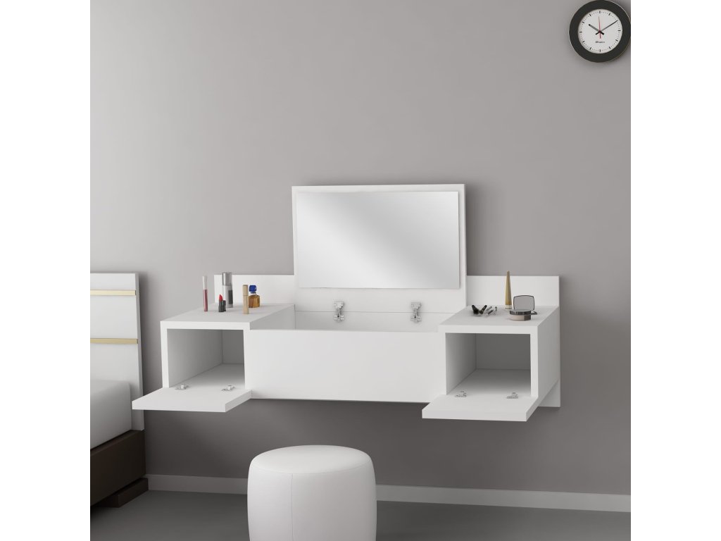 S šířkou 100 cm, výškou 33 cm a hloubkou 39,1 cm poskytuje náš make-up stolek dostatek prostoru pro všechny vaše kosmetické potřeby. Součástí balení je zrcadlo o šířce 49,6 cm, které vám umožní bez námahy zdokonalit nanášení make-upu.