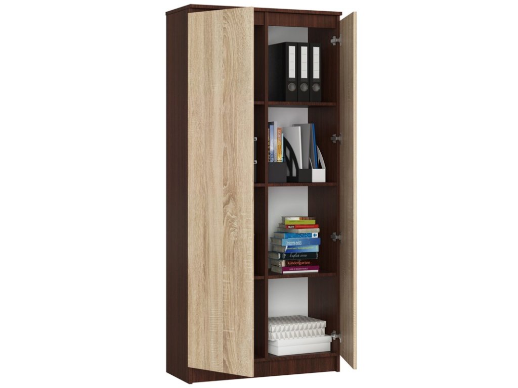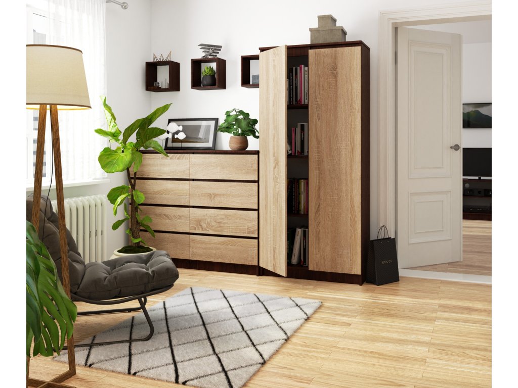 ANNI80 nabízí unikátní designovou kombinaci temného odstínu wenge a přírodního dubu Sonoma. Tento policová skříň je ideálním řešením pro ty, kteří hledají stylový a praktický nábytek, který skvěle zapadne jak do obývacího pokoje, tak i do kanceláře či pracovny.