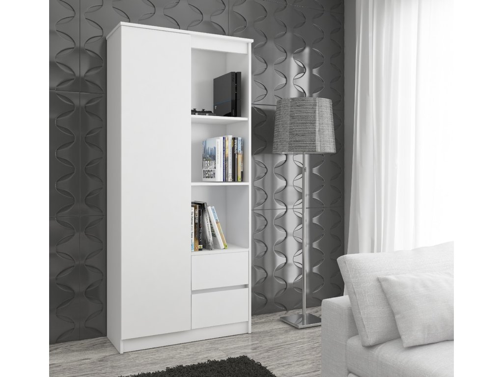 S celkovými rozměry 180 x 80 x 35 cm a celkem 7 policemi poskytuje tato policová skříň spoustu prostoru pro uložení vašich věcí. Navíc je vybaven 2 zásuvkami pro menší předměty a praktickou skříňkou s plnými dvířky pro větší objekty.