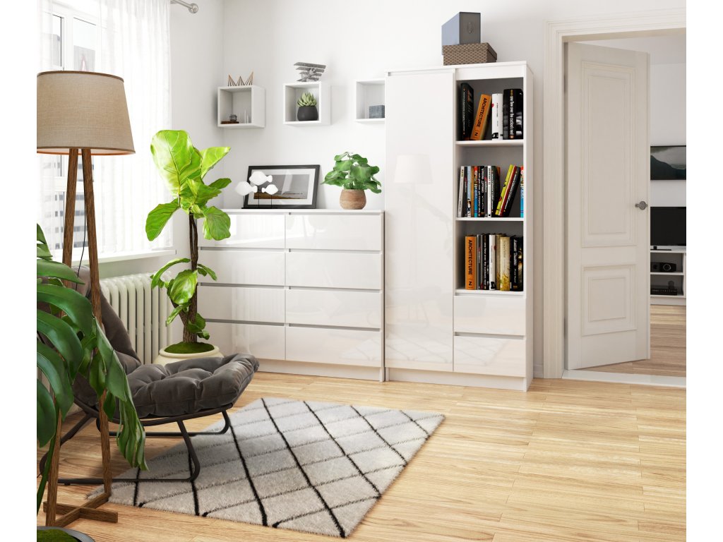 Díky kombinaci bílé barvy s bílým leskem přináší tento regál svěží a vzdušný vzhled do každého interiéru. Lesklý dekor dodává regálu na eleganci a zdůrazňuje jeho luxusní vzhled.