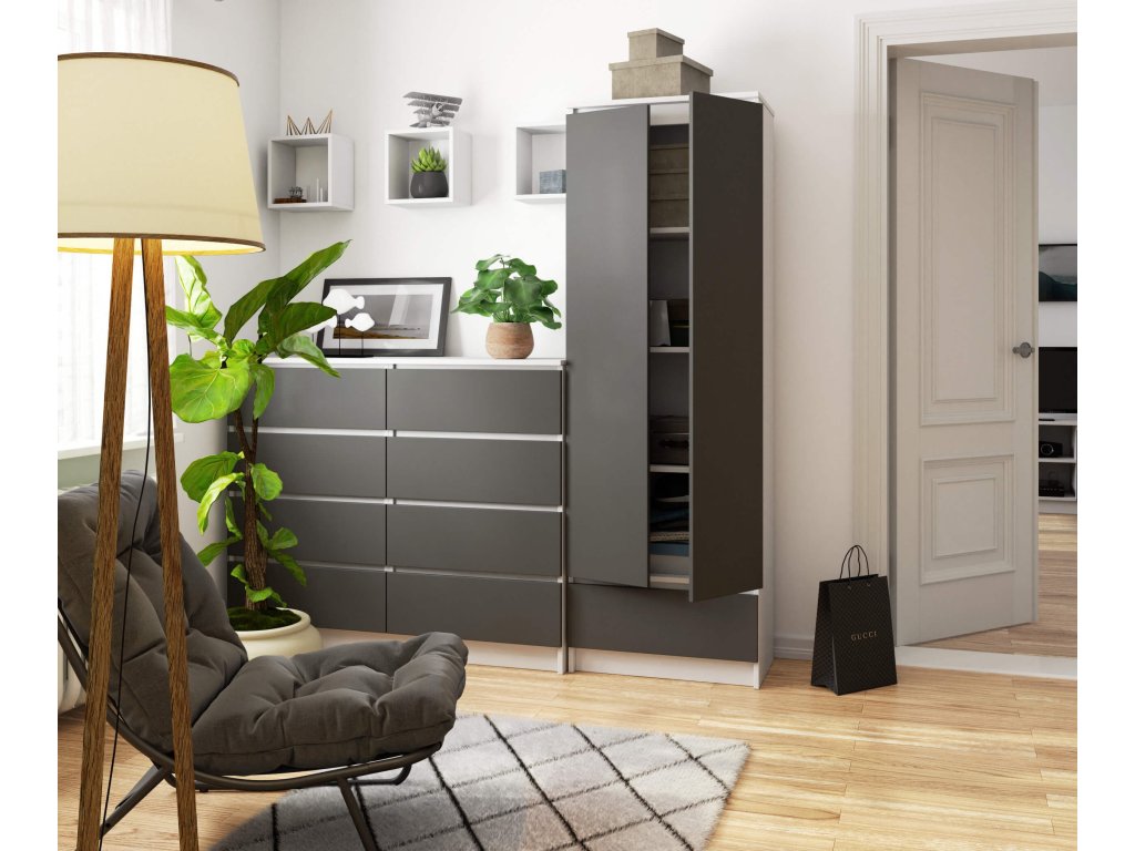 Potřebujete pro svůj obývací pokoj, kancelář či pracovnu policová skříň, který kombinuje moderní vzhled s praktičností? BEBE60 je tou správnou volbou pro vás. Kombinace bílé a grafitové barvy dodá vašemu interiéru ten správný šmrnc.