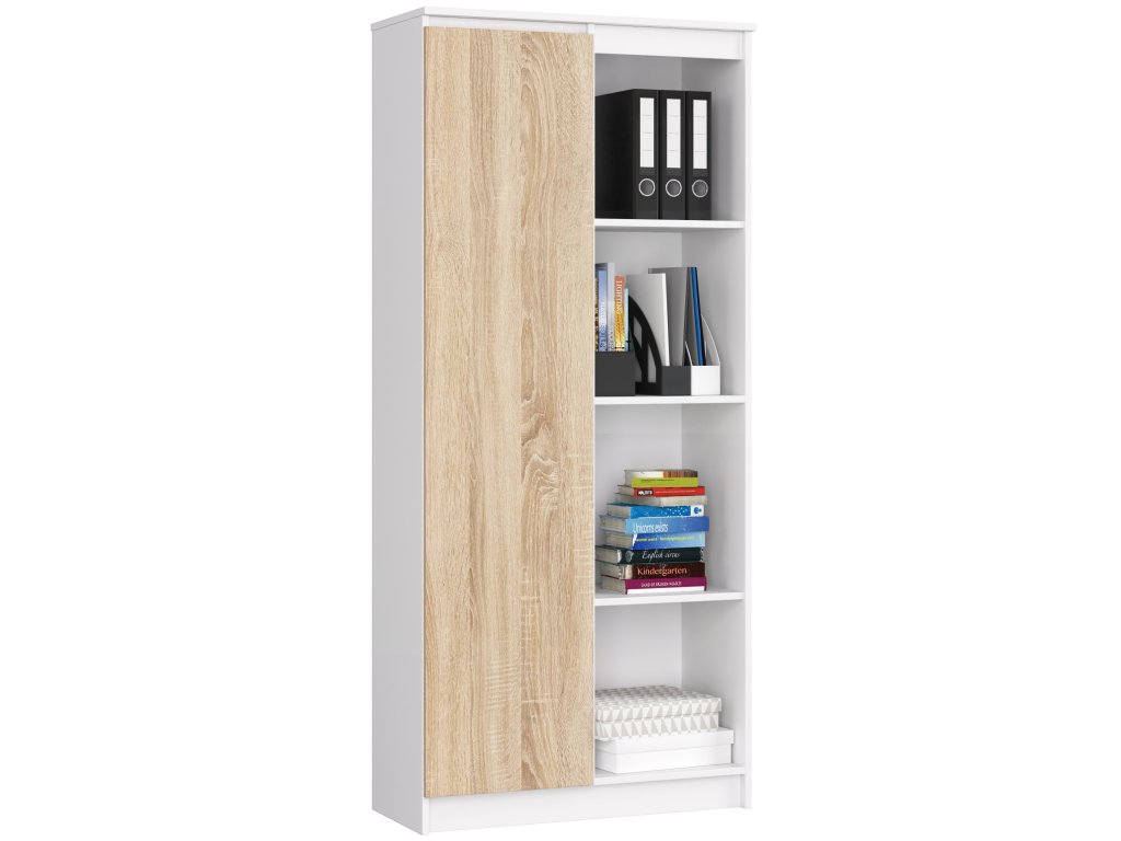 Představujeme vám KATHRINE80 - policová skříň, která kombinuje čistotu bílé barvy s teplými tóny dubu Sonoma, což z něj dělá ideální volbu pro ty, kteří chtějí svůj interiér obohatit o prvek moderní elegance.