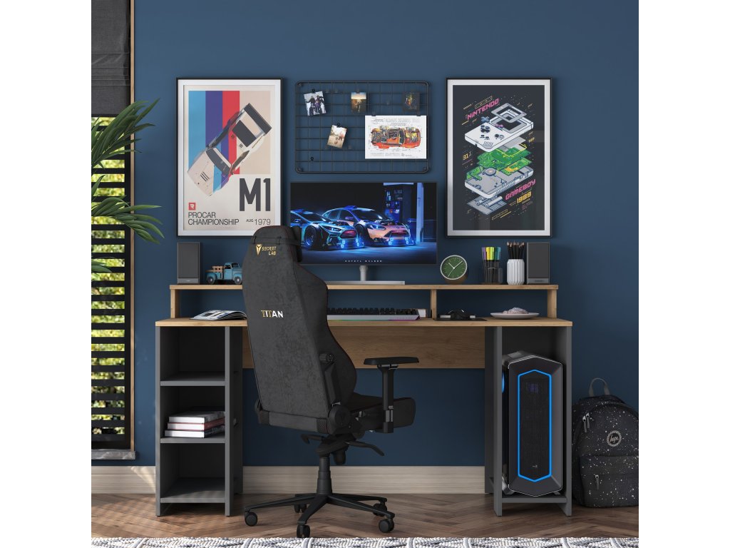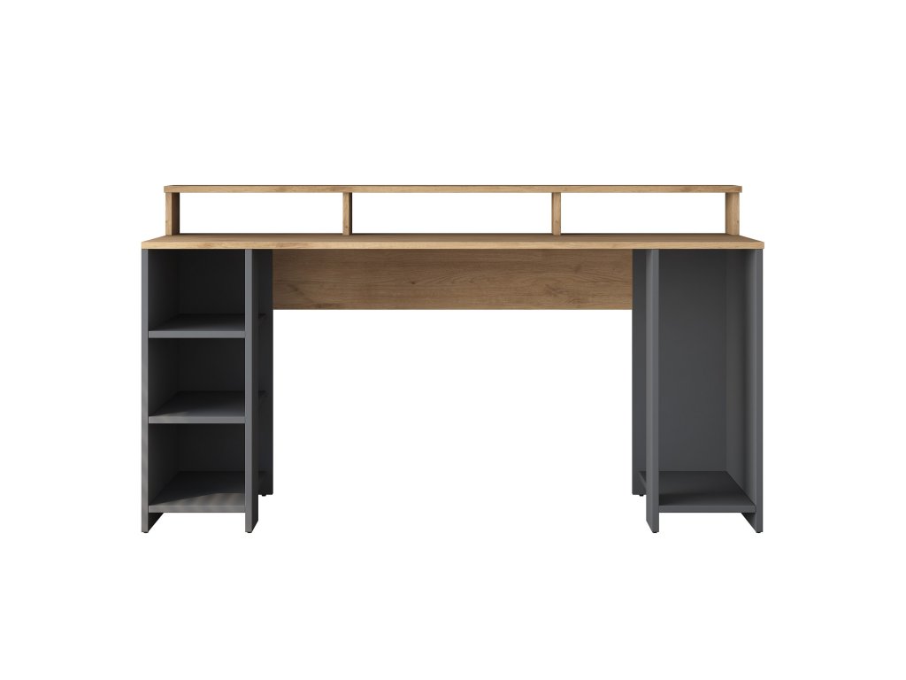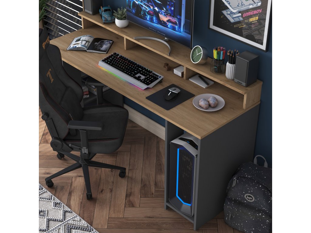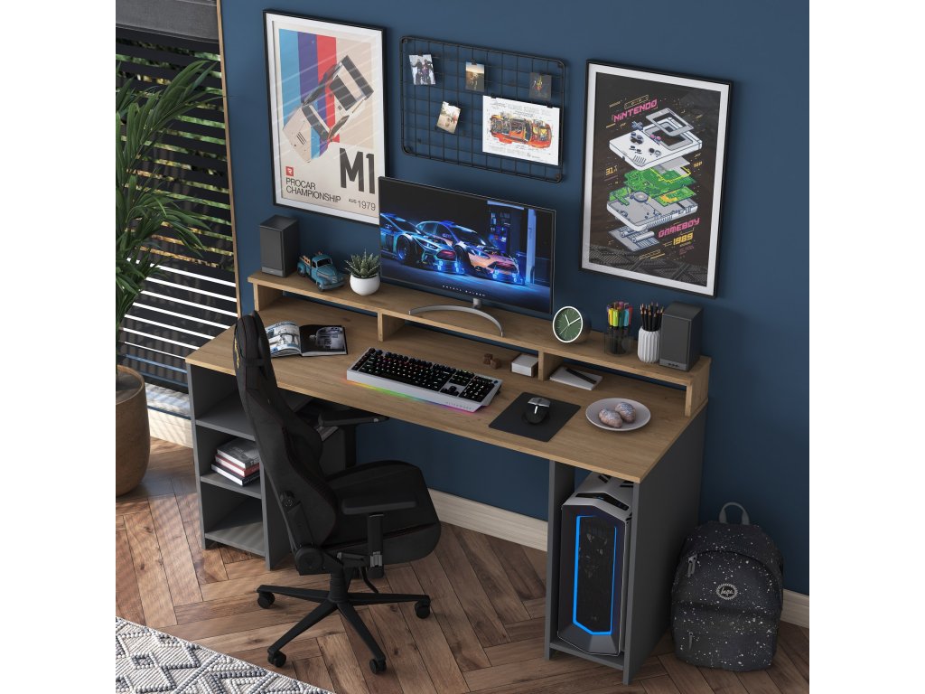 Psací stůl POMELO je ideální volbou pro ty, kteří hledají kombinaci stylu a praktičnosti. Jeho elegantní design v dekoru ořechu a antracitu přináší do každé místnosti moderní atmosféru, zatímco jeho promyšlené uspořádání zajišťuje dostatek místa pro práci, studium nebo kreativní aktivity.