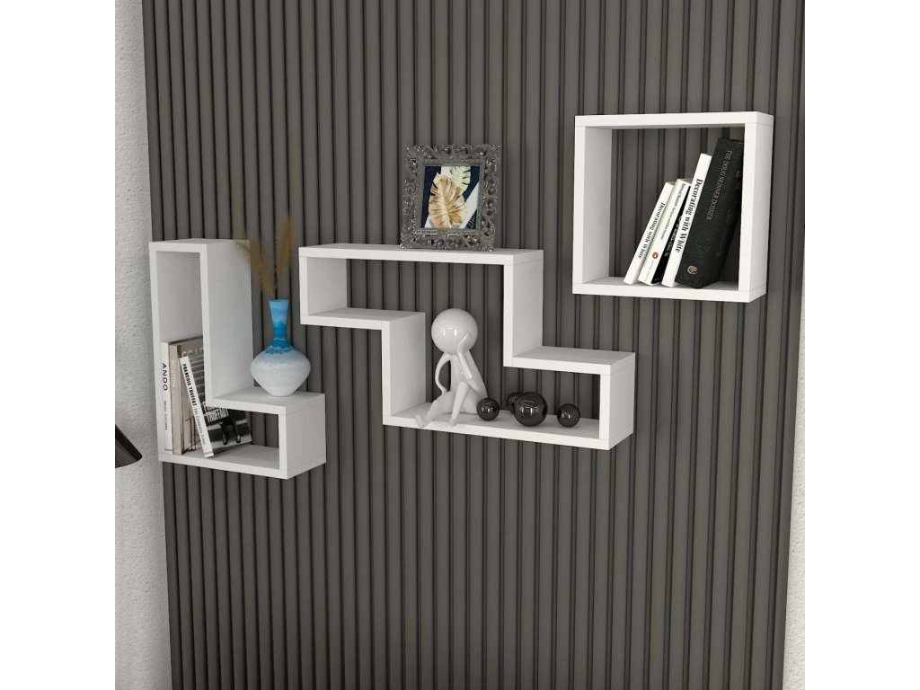 Unikátní sestava tří polic nabízí různé velikosti a tvary, což umožňuje kreativní uspořádání a maximální využití prostoru. Dodáváme v demontu, což zajišťuje bezpečnou přepravu a snadnou montáž. Přidejte do svého domova tento krásný a praktický kousek nábytku a užívejte si jeho výhod každý den.