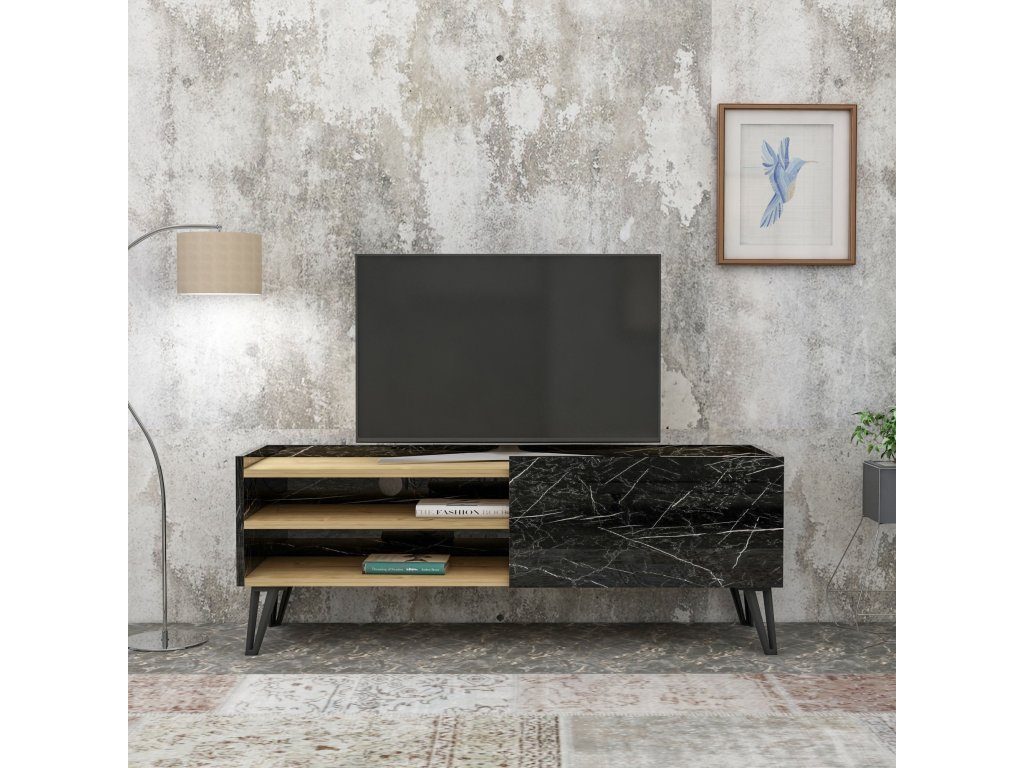 TV stolek PORTAL je ideálním doplňkem pro moderní interiéry, kde se klade důraz na eleganci a funkčnost. Tento stylový nábytek kombinuje plná dvířka a regálek, což zajišťuje dostatek úložného prostoru pro vaše elektronické zařízení, příslušenství nebo dekorace. Díky svému luxusnímu designu snadno zapadne do jakéhokoli obývacího pokoje.