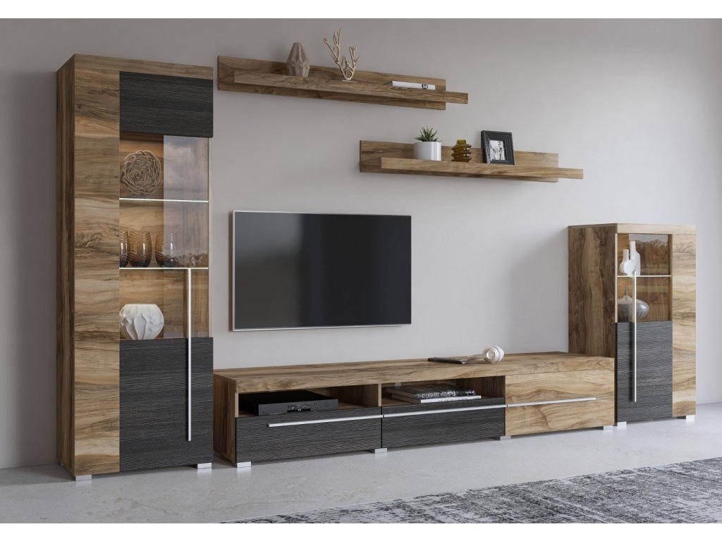 Obývací stěna POUND je elegantním a funkčním doplňkem každého obývacího pokoje. Spojuje moderní vzhled s praktickým úložným prostorem, což umožňuje efektivní organizaci a zároveň podtrhuje estetiku interiéru. Díky kombinaci dekoru ořech Satin a touchwood působí nadčasově a přirozeně.