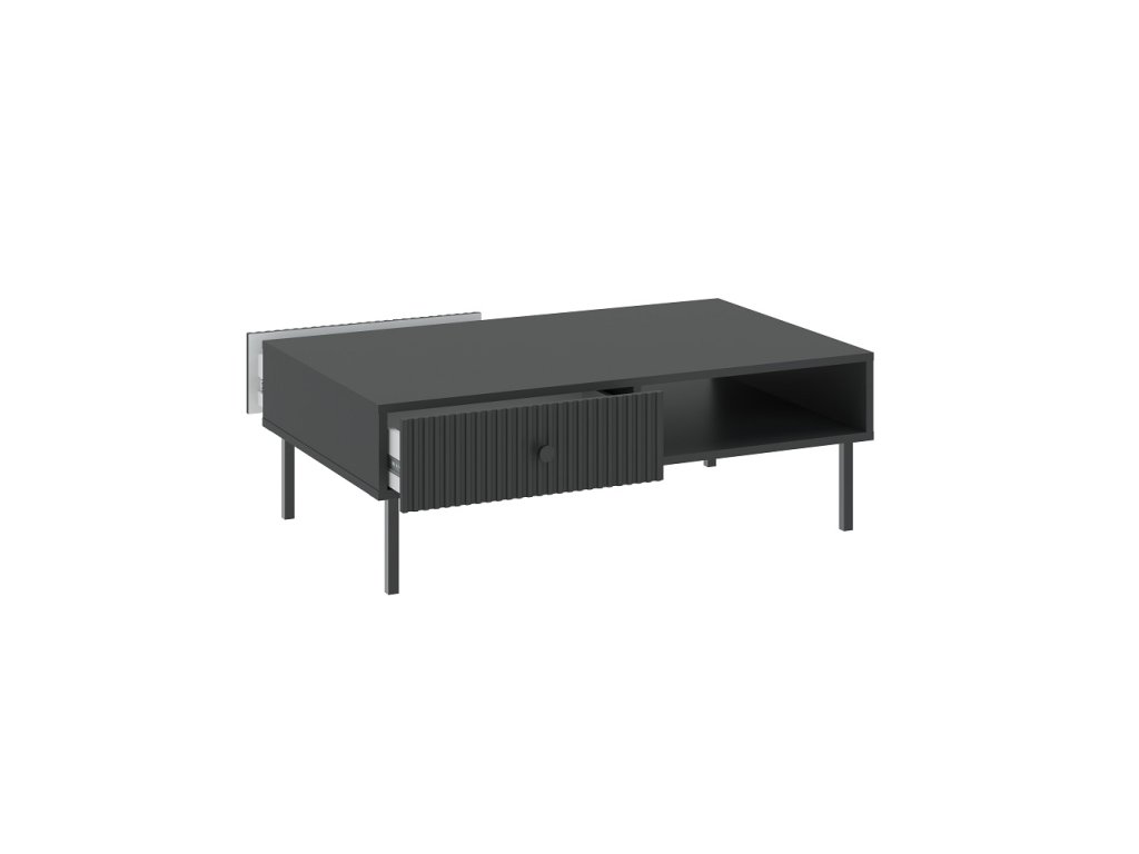 Konferenční stolek je vyroben z kvalitních LTD desek, které jsou nenáročné na údržbu. Nožičky jsou kovové. Disponuje dvěma zásuvkami.