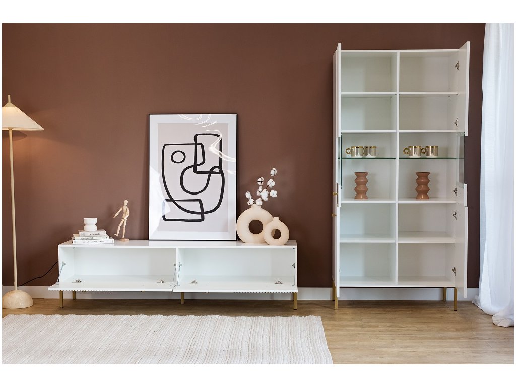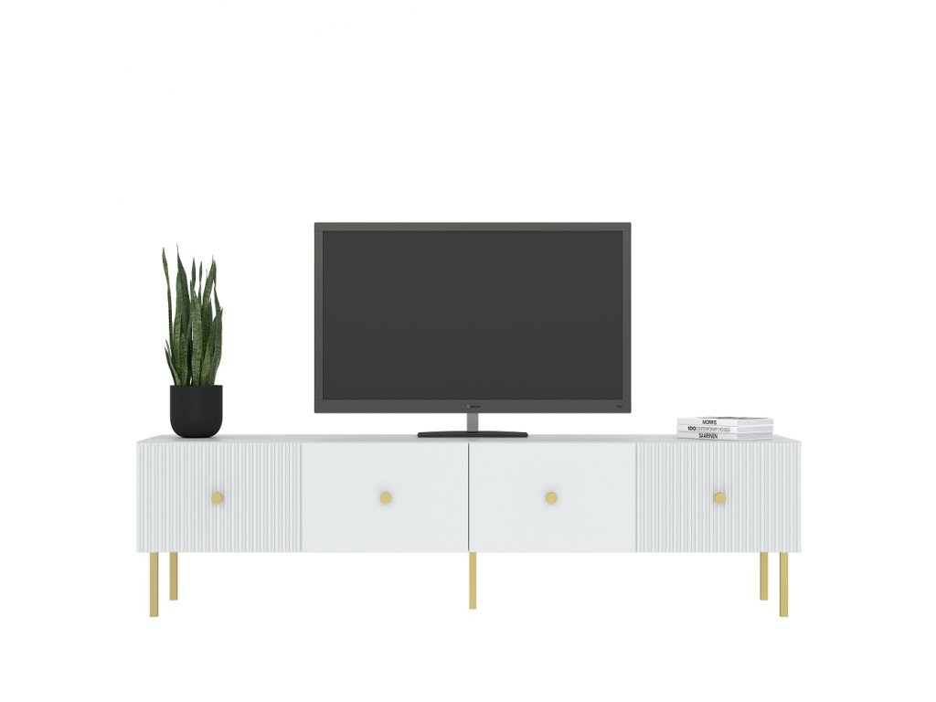 PRADY televizní stolek 2D, bílá/zlatý úchyt