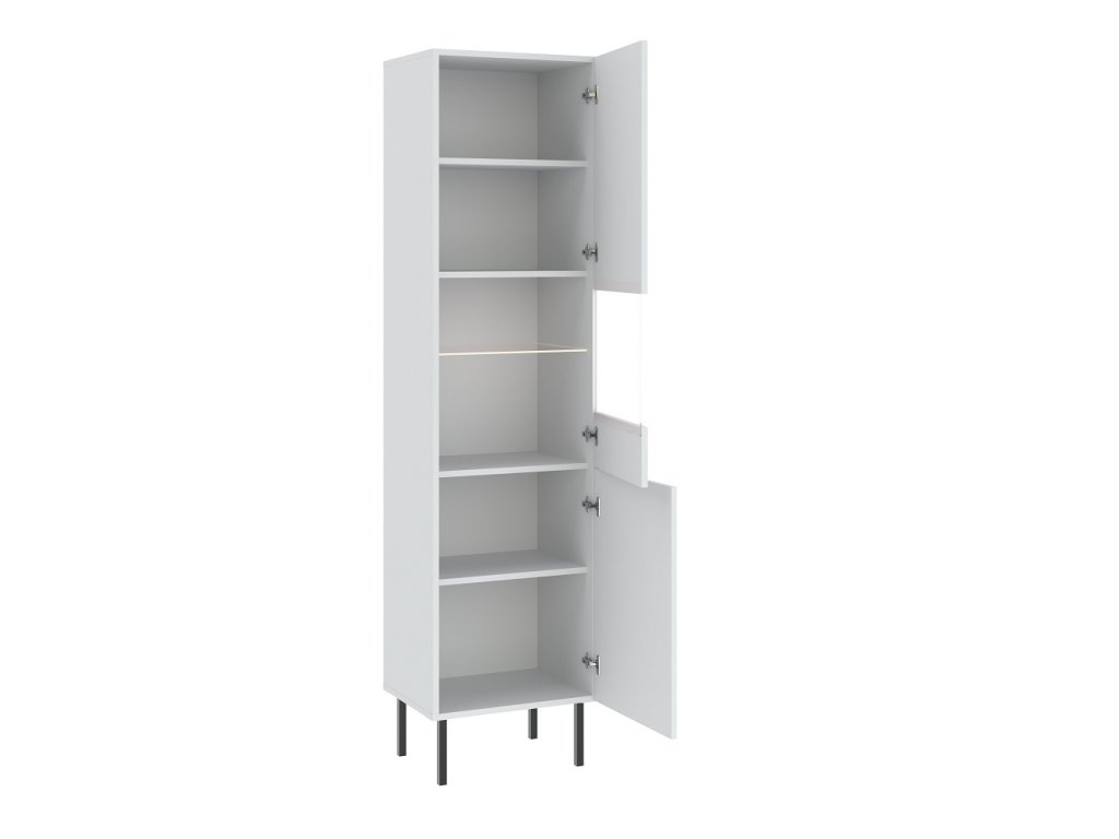 Vitrína je vyrobena z kvalitních LTD desek, které jsou nenáročné na údržbu. Nožičky jsou kovové. Vitrína je dvoudveřová, ve střední části je otevřena prosklená police.