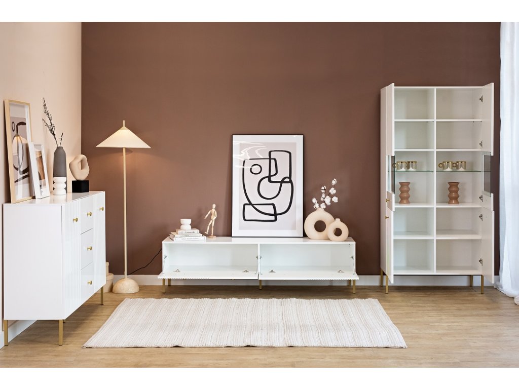 PRADY vysoká vitrína 4D, bílá/zlatý úchyt