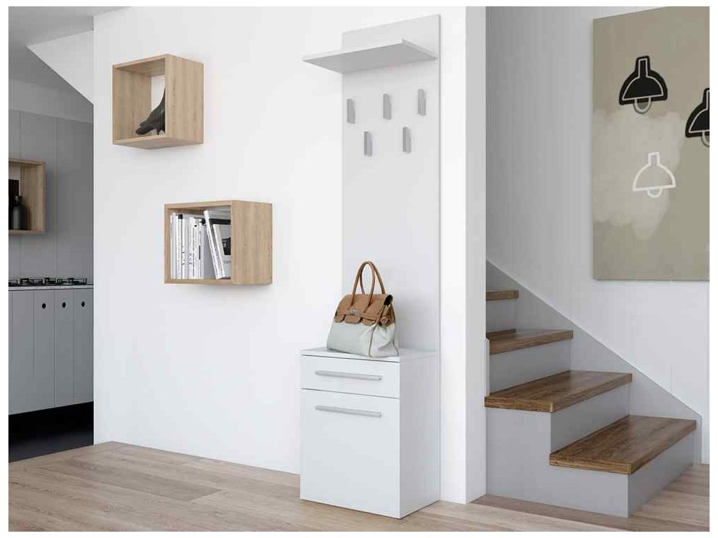 Tato sestava nabízí dostatek úložného prostoru pro vaše kabáty, bundy a další oděvy díky věšákům a skříňce s jedním dveřmi. Odkládací police vám umožní uskladnit drobnosti a klíče tak, aby byly vždy po ruce.