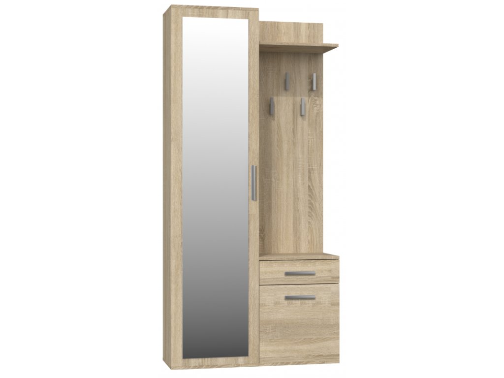 Sestava obsahuje: | věšák, skříň se zrcadlem a skříňkou |
