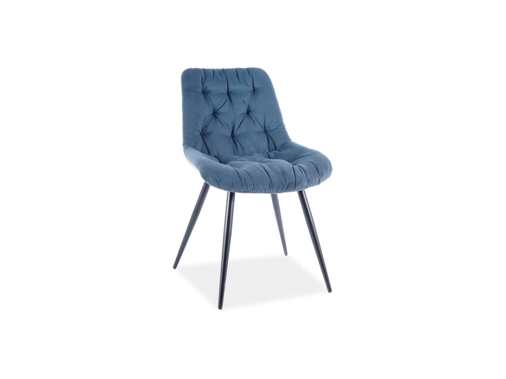 Jídelní židle PREGA bude ozdobou každé kavárny, baru, jídelny i kuchyňky. Nekomplikovaný vzhled kombinuje hebký látkový potah v modré barvě s žebrováním a úzké kovové nohy. Lehké vyvýšení sedáku na stranách poskytuje podporu stranou a posiluje komfort sezení.