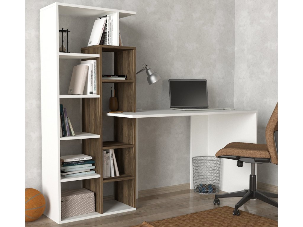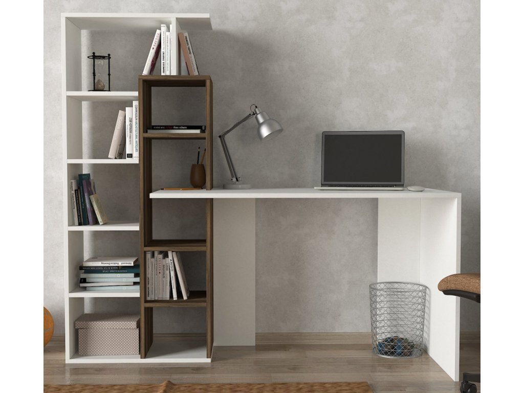PREMIUM pracovní stůl s regálem, bílá / ořech