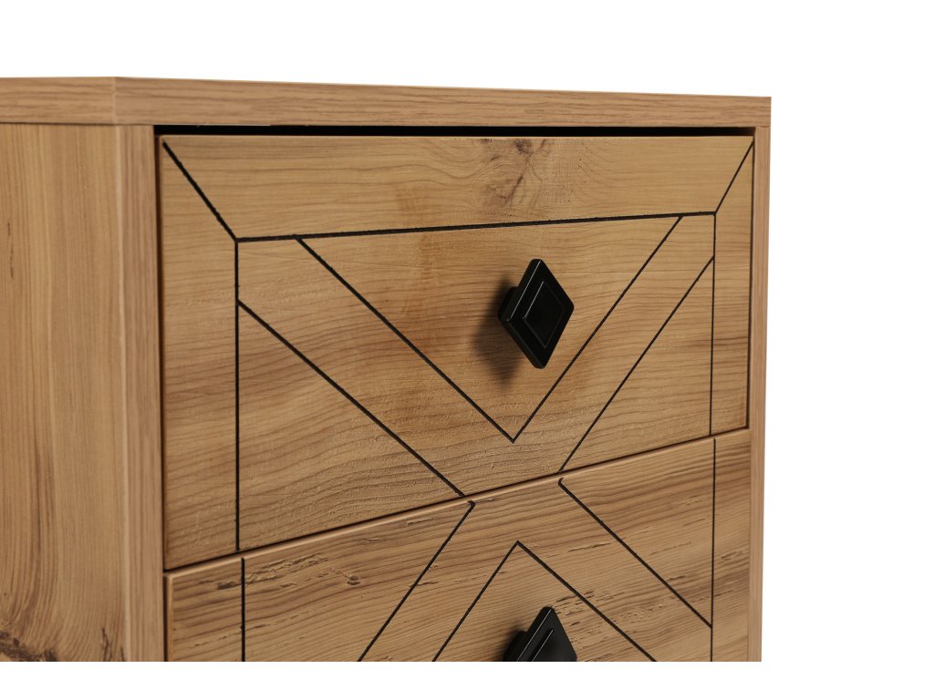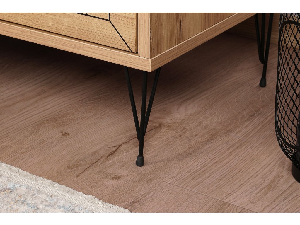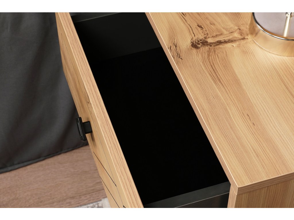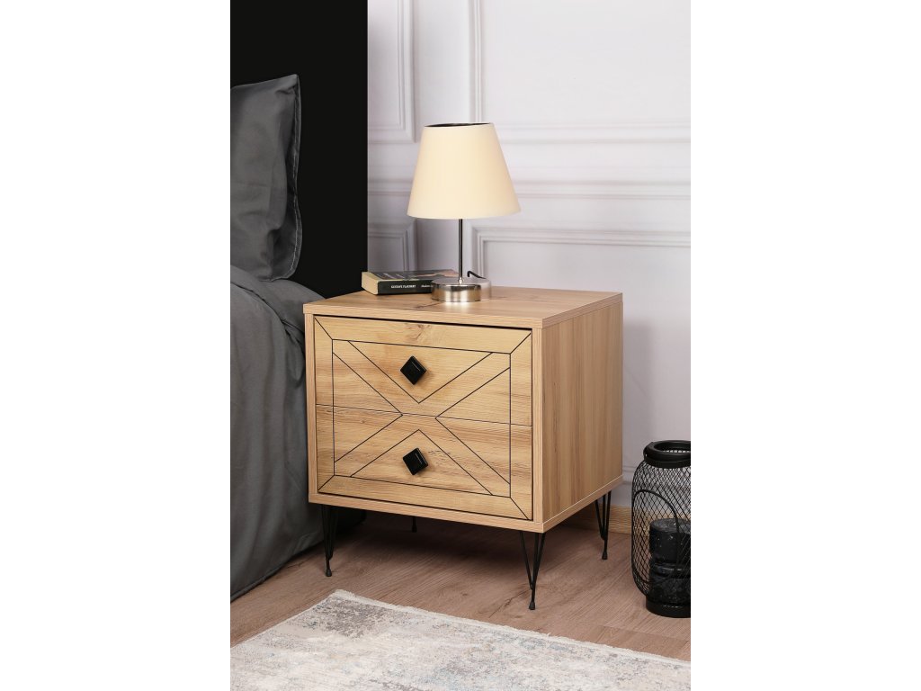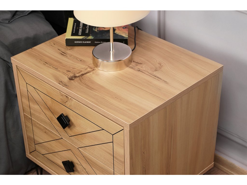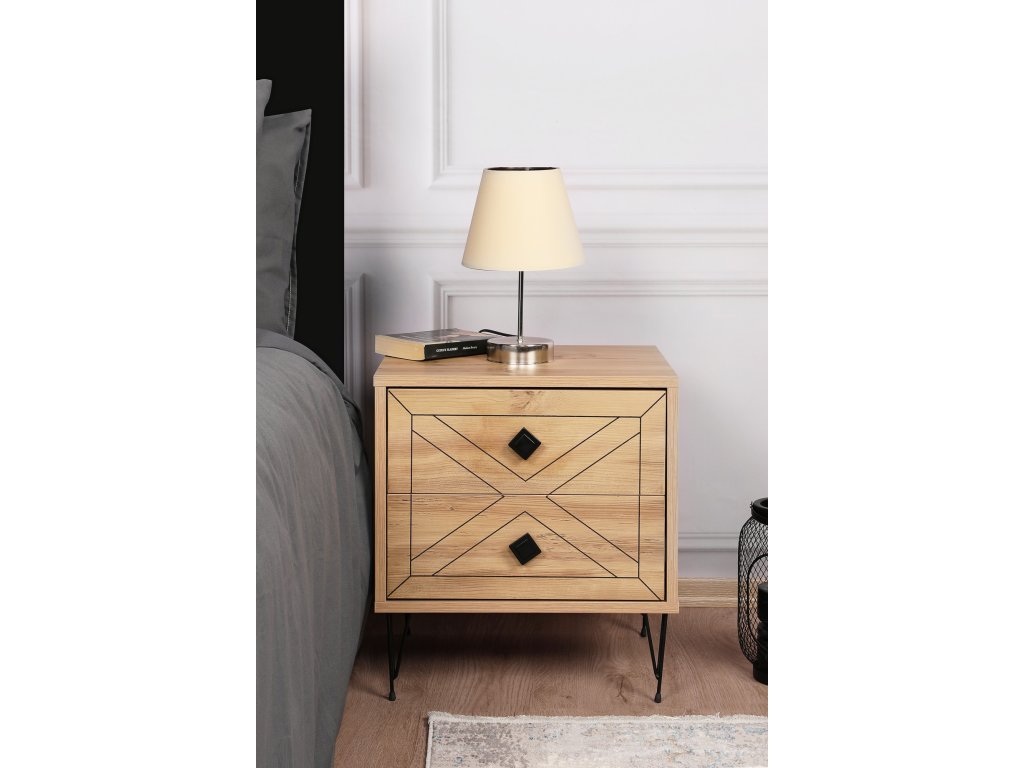Tento noční stolek je vyroben ze 100% dřevotřísky s melaminovým povlakem a je konstruován tak, aby odolal zkoušce času. Tloušťka 18 mm zajišťuje odolnost a stabilitu, takže si jeho krásu budete moci užívat po mnoho let. Kovové nohy poskytují dodatečnou oporu a dodávají celkovému designu moderní nádech.