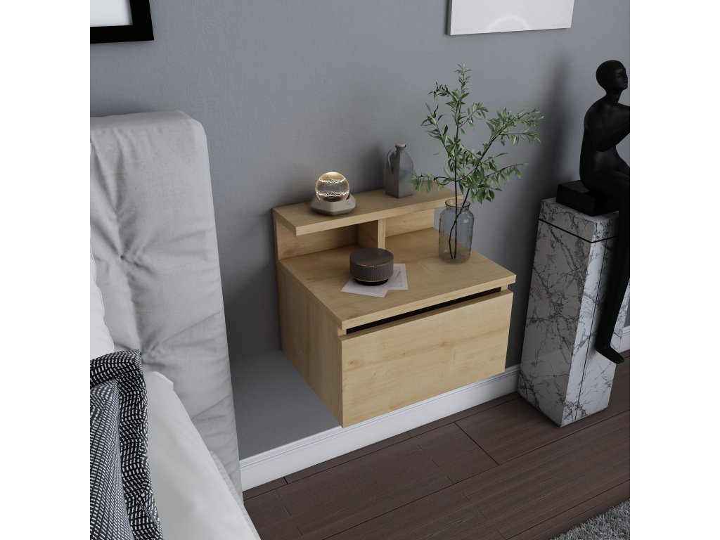 Noční stolek se vyznačuje podmanivou dubovou barvou, která vyzařuje teplo a přírodní krásu. Tento všestranný kus nábytku bez námahy doplní jakýkoli interiér, ať už se jedná o moderní prostředí inspirované hotelem, útulné skandinávské útočiště nebo rustikální atmosféru chaty/chaty.