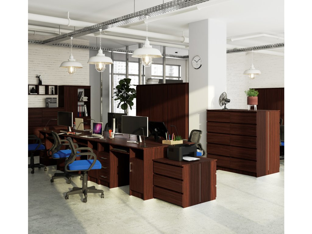 - Vybavení: 3 zásuvky a výsuvná deska na klávesnici