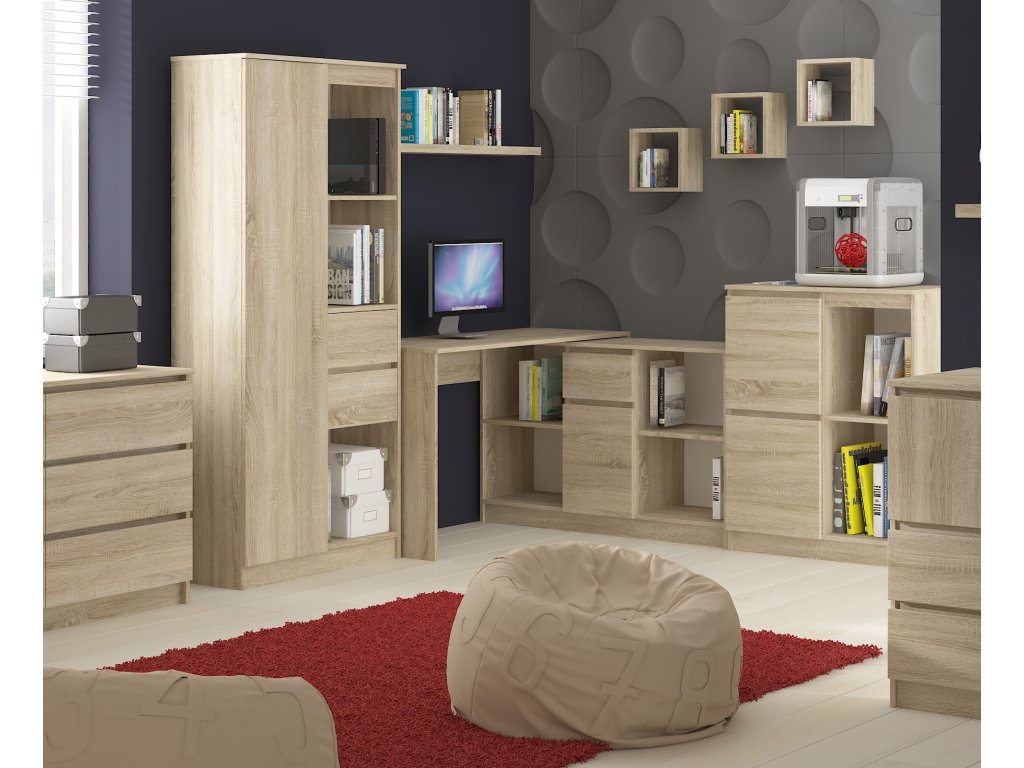 Představujeme JIŘÍ120 – moderní psací stůl, který skvěle zapadne do dětského pokoje, kanceláře či pracovny. S jeho teplým tónem dubu Sonoma přinese do vašeho prostoru atmosféru pohodlí a klidu.