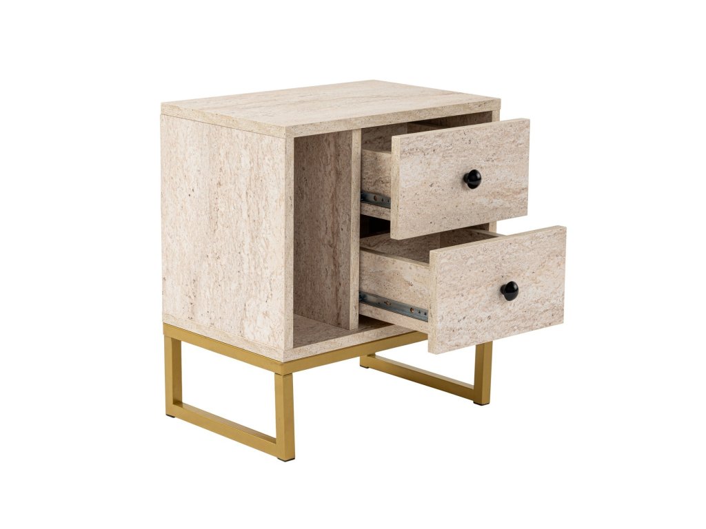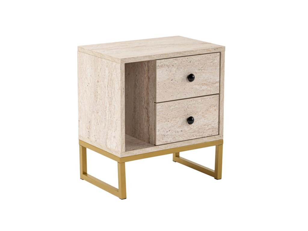 QUEEN noční stolek na nožičkách, traventin / zlatá