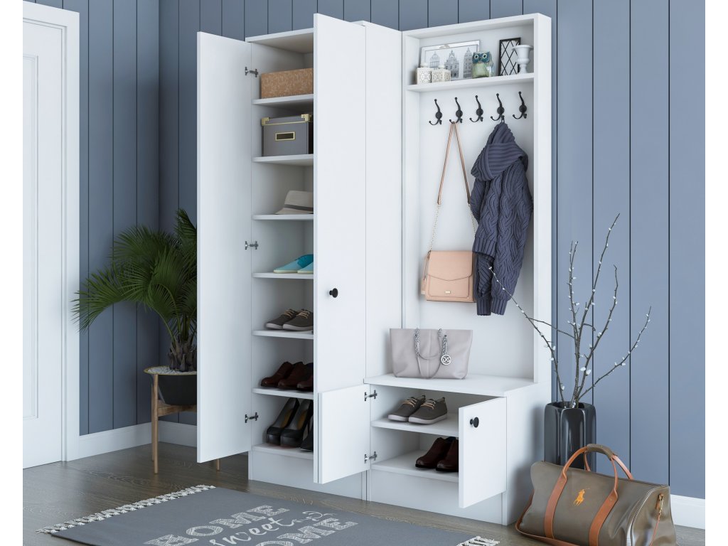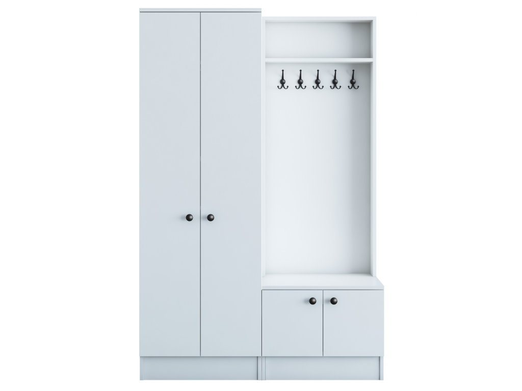 Předsíňová sestava RABIT přináší čistý a funkční design, který se perfektně hodí do moderních předsíní. Díky svému minimalistickému skandinávskému stylu a praktickému uspořádání pomáhá vytvořit organizovaný a stylový prostor.