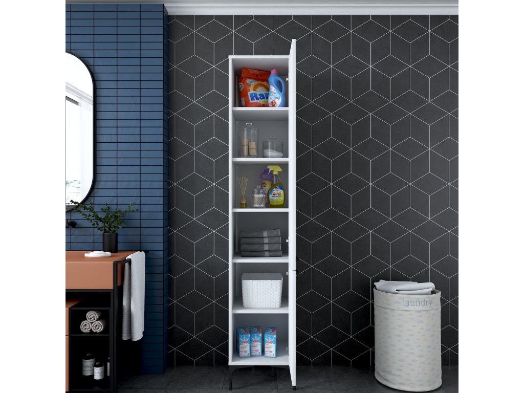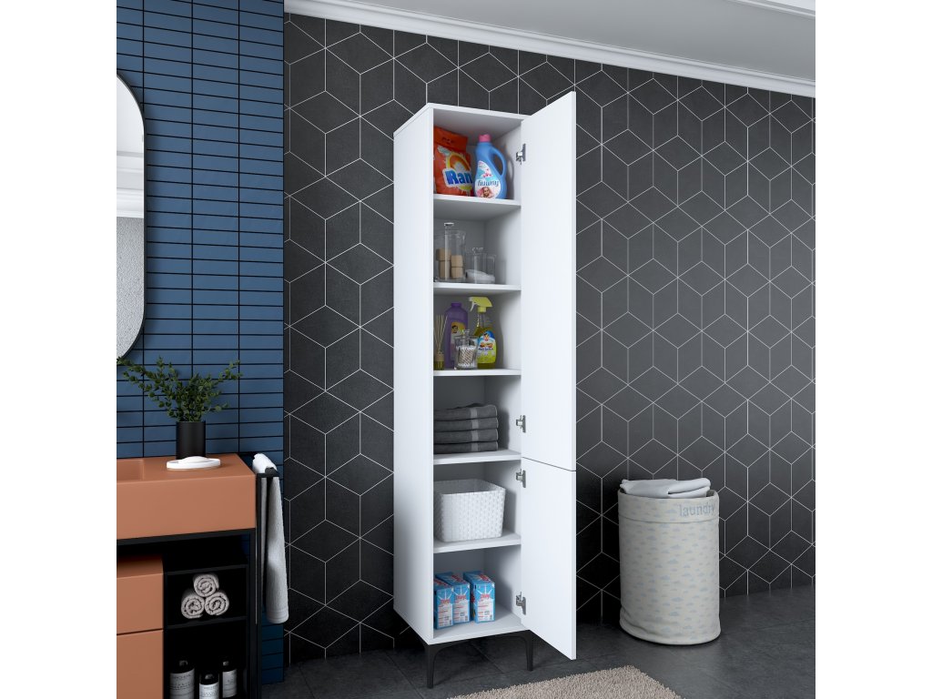 Policová skříň RADIO je navržena pro maximální využití prostoru. Díky dvěma plným dvířkám nabízí dostatek úložného místa pro vaše věci, ať už jde o koupelnové potřeby, boty nebo jiné drobnosti. Vysoce kvalitní materiály, jako je melamin a VT laminát, zajišťují odolnost a snadnou údržbu.