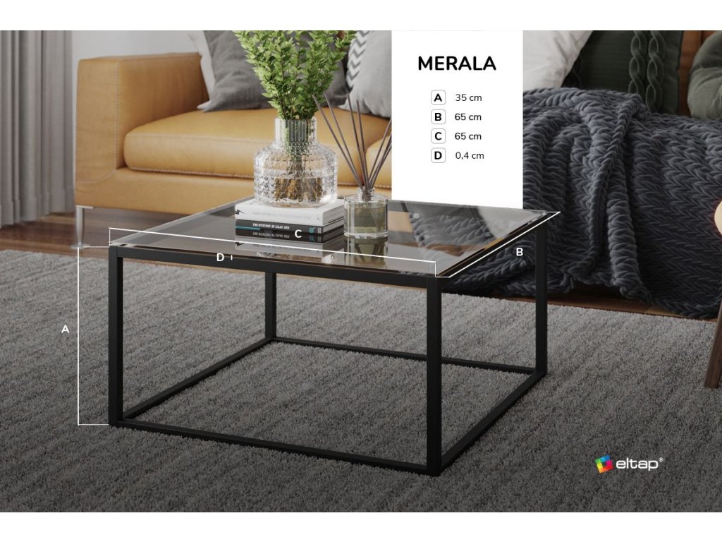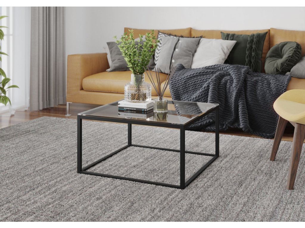 Pevná černá kovová konstrukce je doplněna 4 mm silnou skleněnou deskou. Díky jeho rozměrům jej lze umístit i do menších prostor.