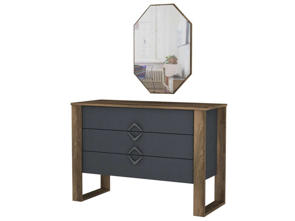 RANG M šuplíková komoda s nástěnným zrcadlem, ořech/antracit
