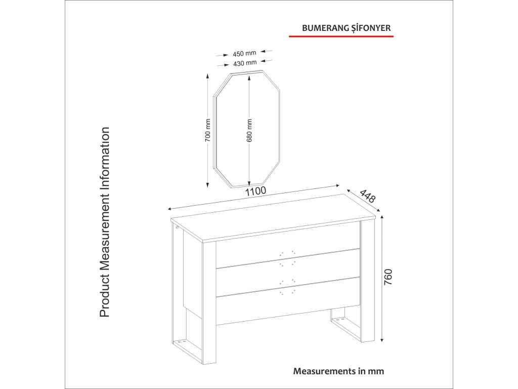 - Sestava obsahuje: Komoda š110 x h45 x v76, nástěnné zrcadlo š45 x h2 x v70