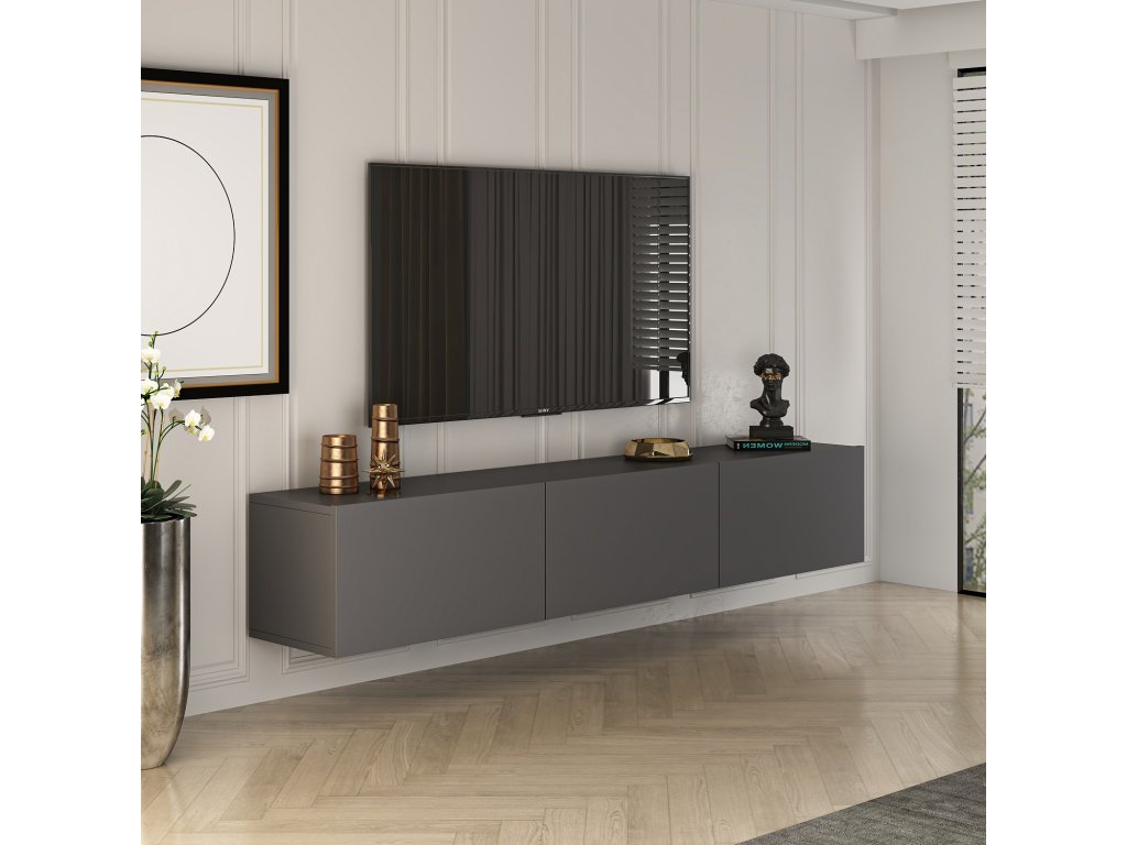 Antracitová barva tohoto televizního stolku dodá každé místnosti nádech sofistikovanosti, zatímco čisté linie a minimalistický design vytvářejí moderní vzhled, který jistě zaujme.
