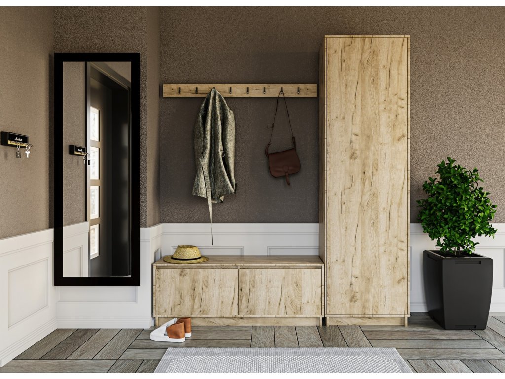 Moderní předsíňová sestava RASSI v minimalistickém provedení promění vaši vstupní chodbu ve stylový a funkční prostor. Nabízí dostatek úložného místa a díky jednoduchým liniím působí moderně a vzdušně.