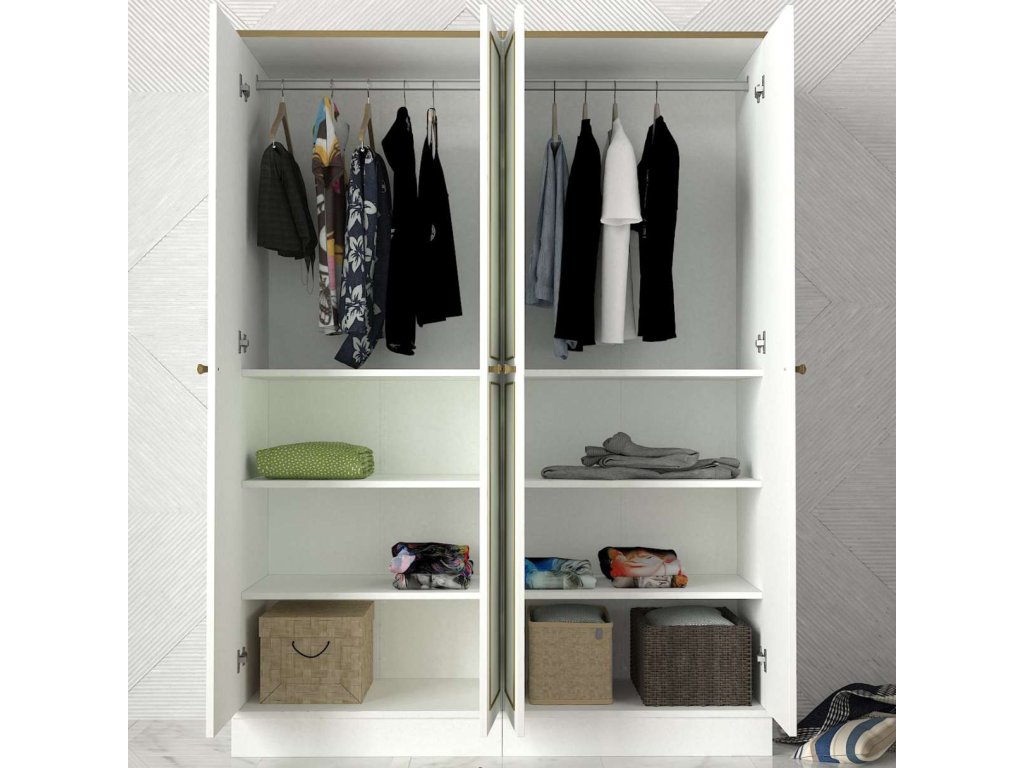 Šatní skříň RAVEN 4D vyniká svým elegantním designem v bílé barvě, který dodá vaší ložnici svěží a moderní vzhled. Praktické vnitřní uspořádání s dvěma šatními tyčemi a třemi policemi nabízí dostatek úložného prostoru pro vaše oblečení a další předměty.