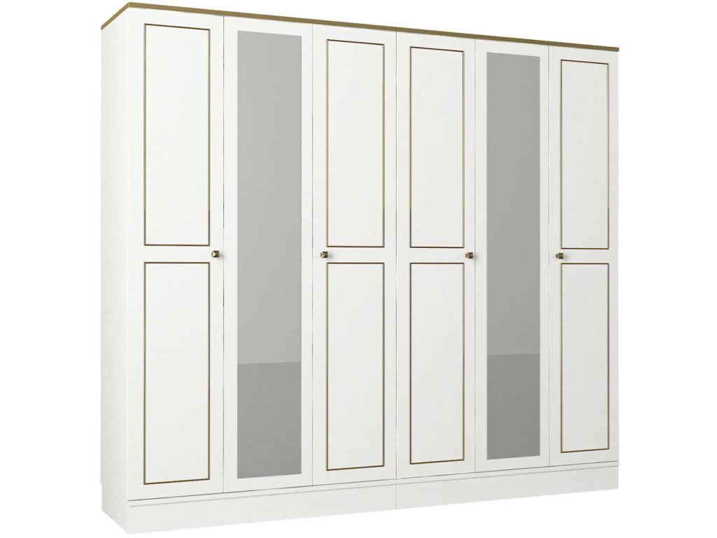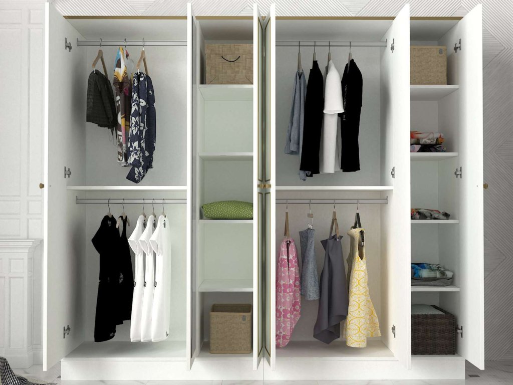 Šatní skříň RAVEN 6D vyniká svým širokým a elegantním designem v bílé barvě, který dodá vaší ložnici svěží a moderní vzhled. Praktické vnitřní uspořádání se čtyřmi šatními tyčemi, čtyřmi policemi a zrcadlem nabízí dostatek úložného prostoru pro vaše oblečení a další předměty, zatímco zrcadlo opticky zvětšuje prostor a dodává interiéru hloubku.