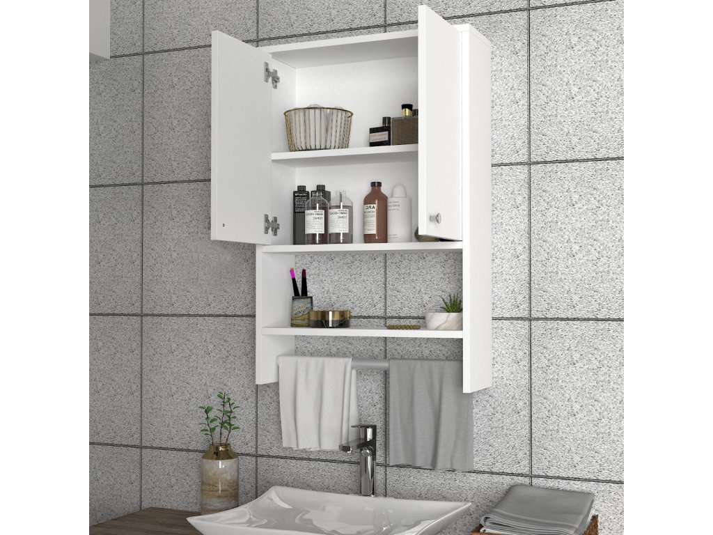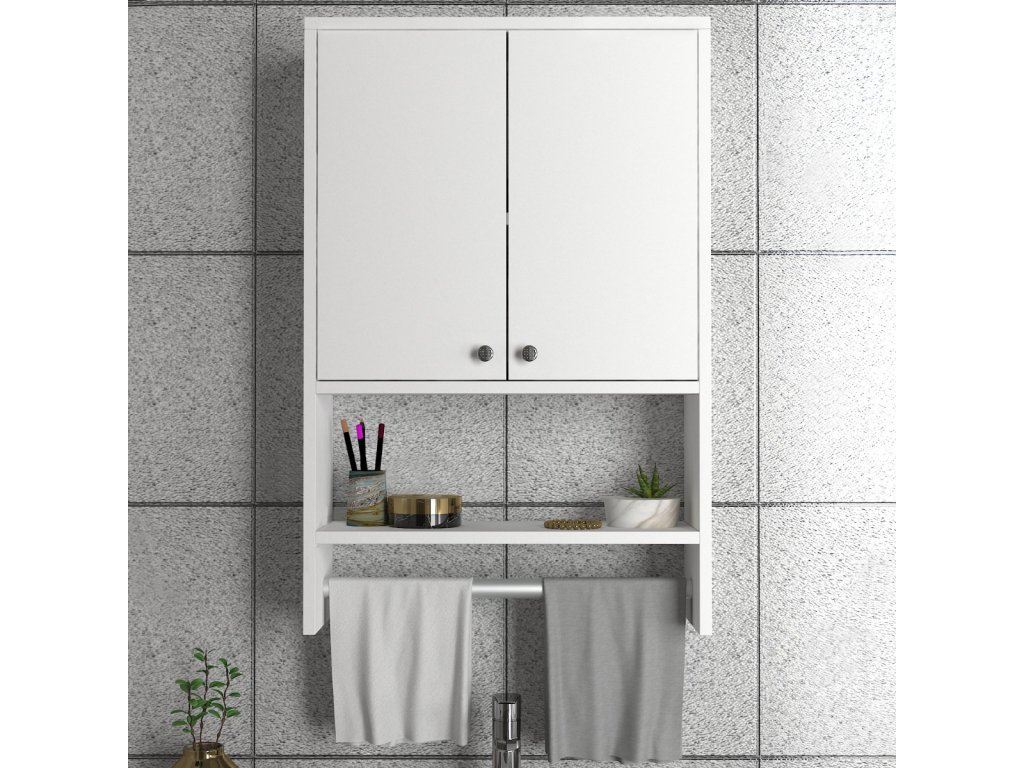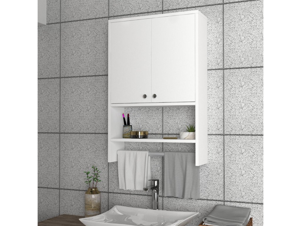 Praktická závěsná skříňka do koupelny RAVI vám poskytne dostatečný úložný prostor v podobě zavřené skříňky a otevřené odkládací police. Uvnitř se nachází jedna police. Skříňka je vyrobena z kvalitní 18 mm laminované desky hraněné PVC páskou. tento materiál je jednoduchý na údržbu a odolný vůči poškrábání.