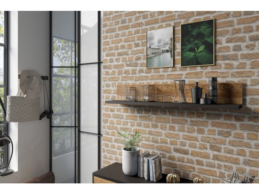 Polička REBEL patří mezi klasické závěsné poličky, které vytvoří prostor pro umístění knih či dekorací. Nábytek je vyroben z kvalitní 15 mm lamino desky, která není náročná na údržbu. Viditelné části mají ABS hrany, které ochrání nábytek před poškozením. Odkládací deska nábytku je z 32 mm lamino desky v barvě černá matná. Barevné provedení zadní desky je Appenzeller Fichte. Dodáváme v demontu.