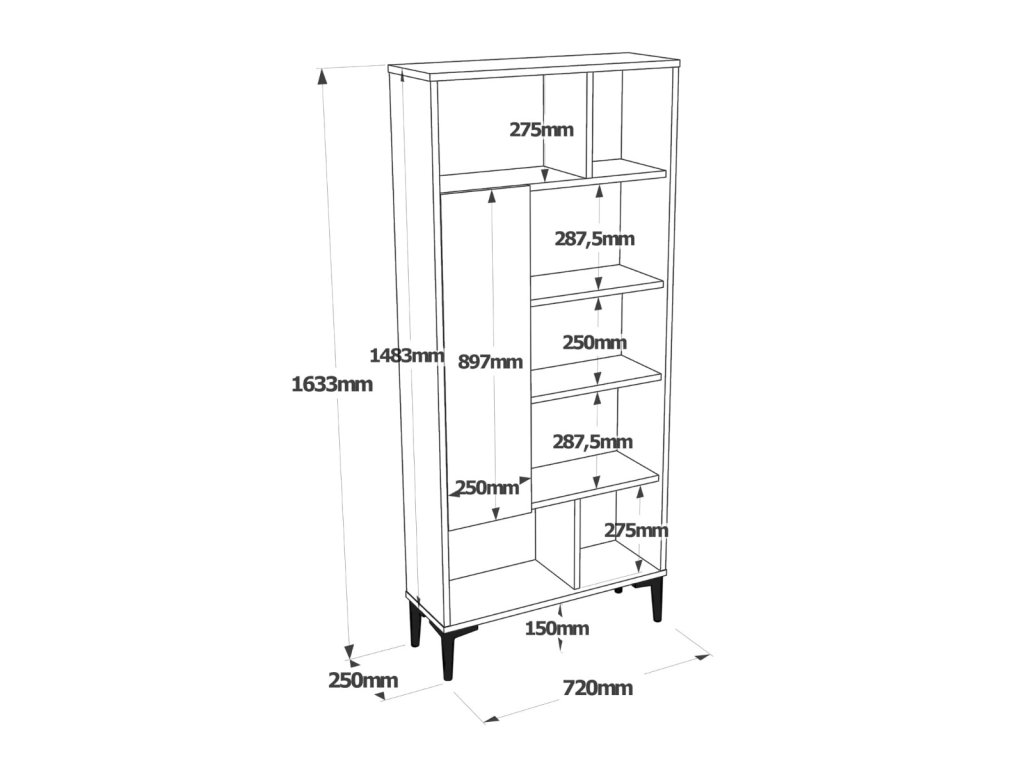 Regál vhodný do obývacího pokoje. Nabízí praktické úložné prostory a odolný materiál.