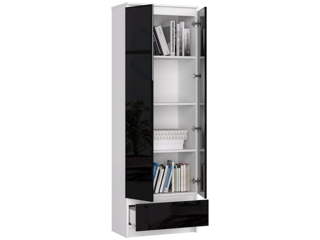 Policová skříň BEBE60: Moderní kombinace bílé a černého lesku