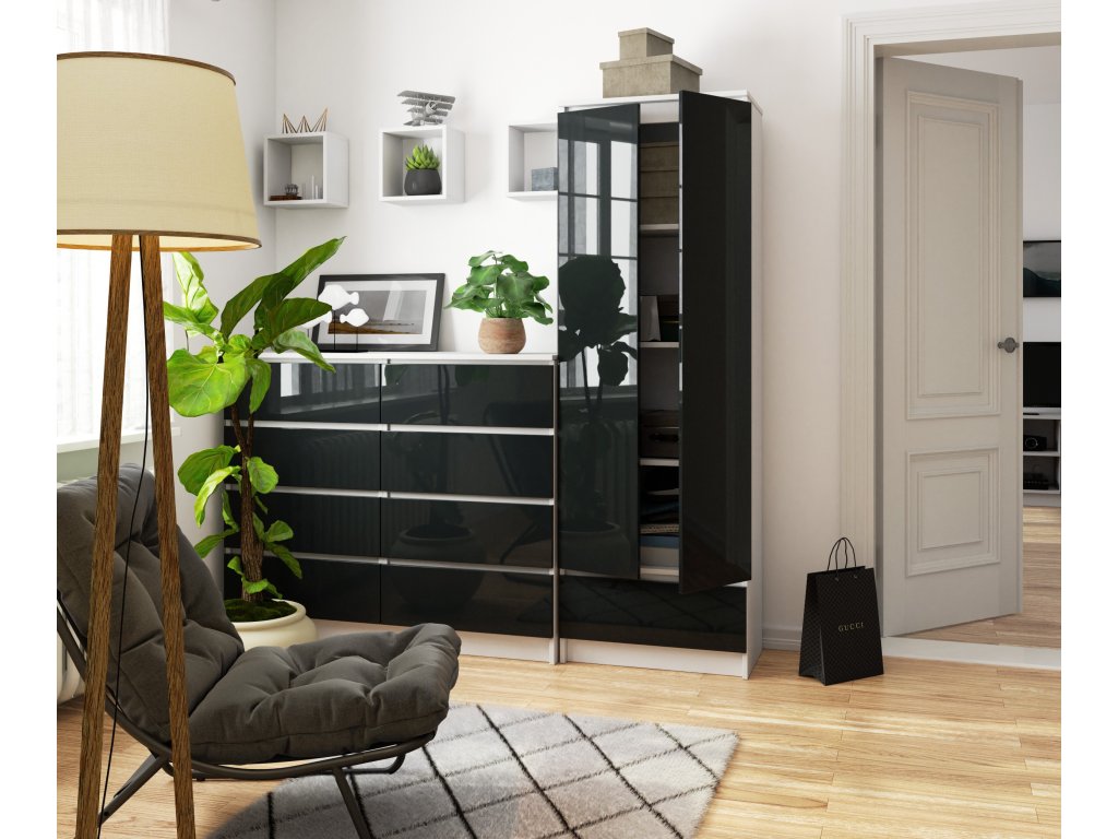 - Barva: svěží bílá v kombinaci s lesklým grafitovým dekorem přináší do interiéru moderní vzhled.