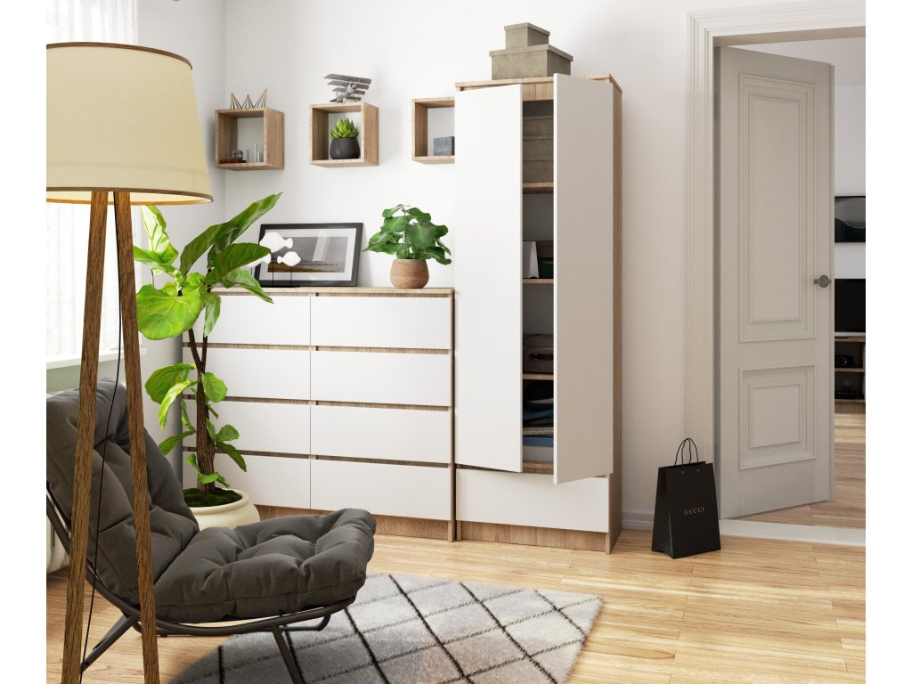 - Barva: kombinace dubu Sonoma a bílé - elegantní a vždy v módním trendu.